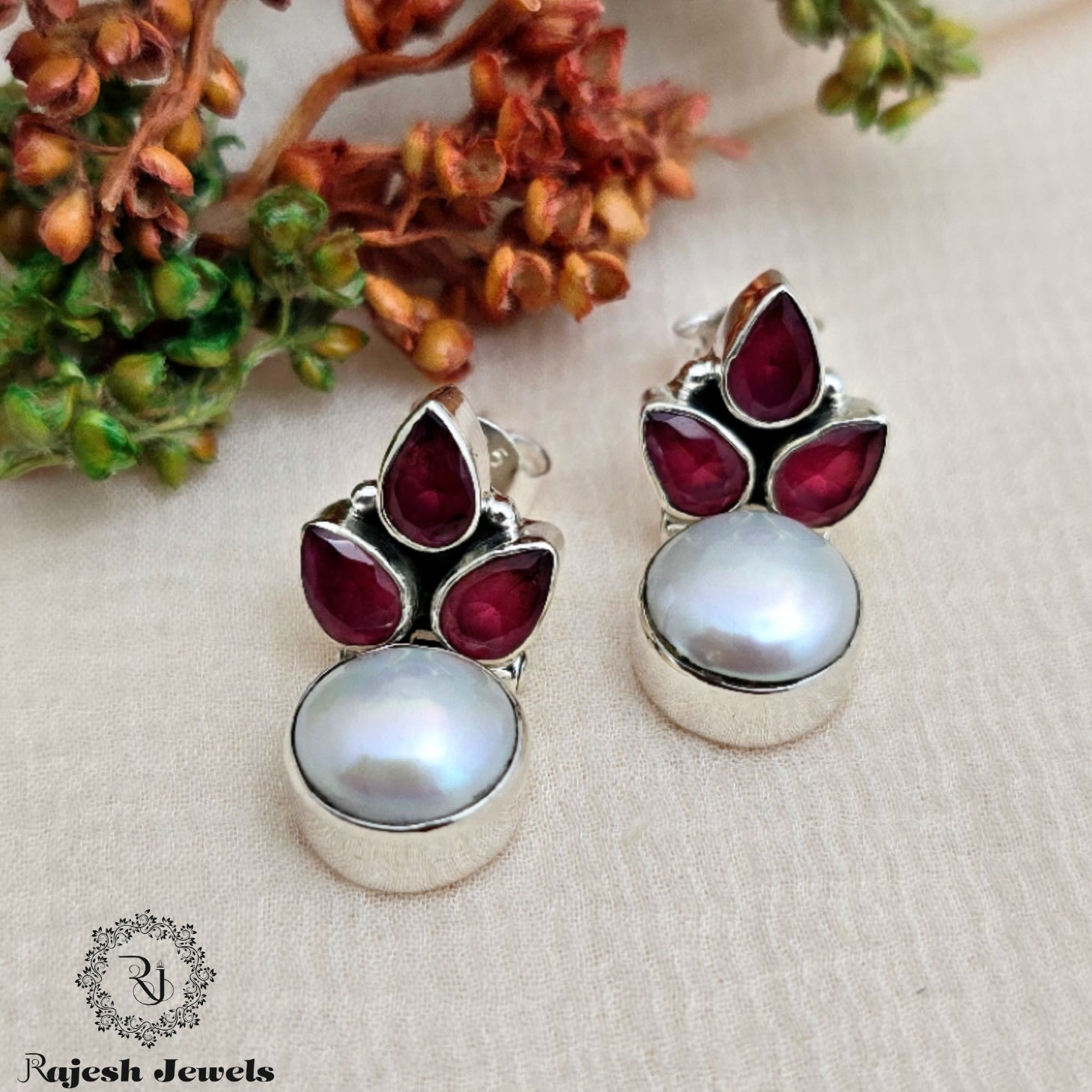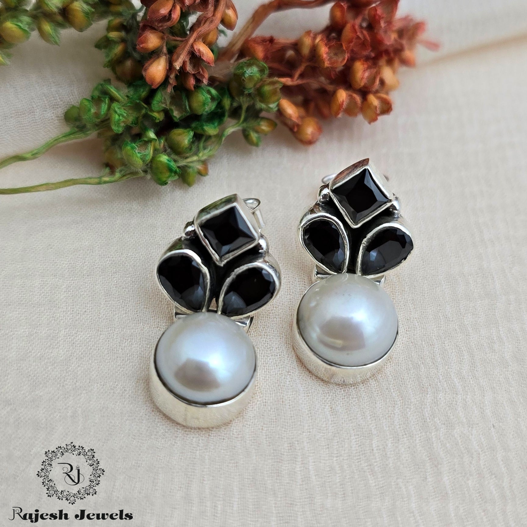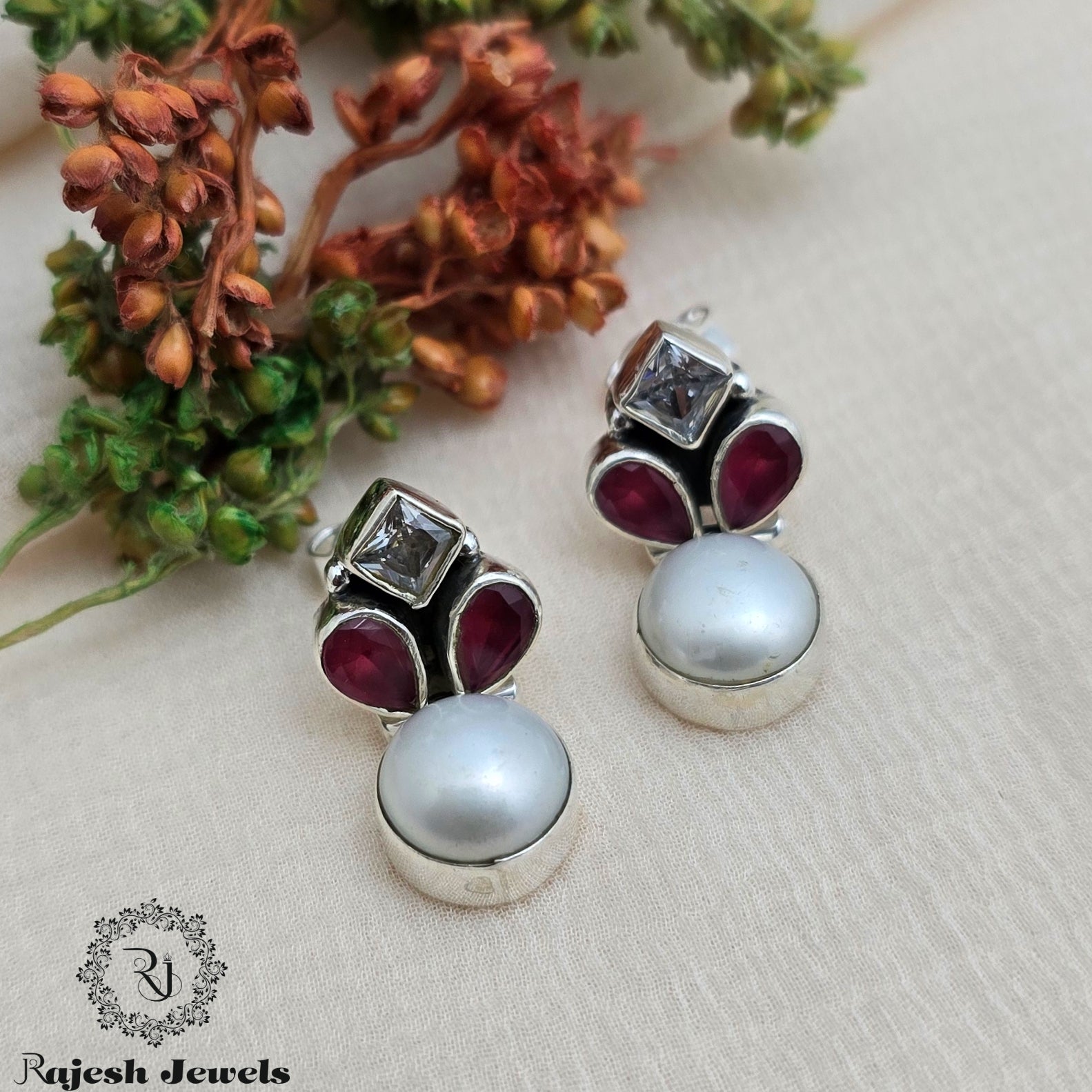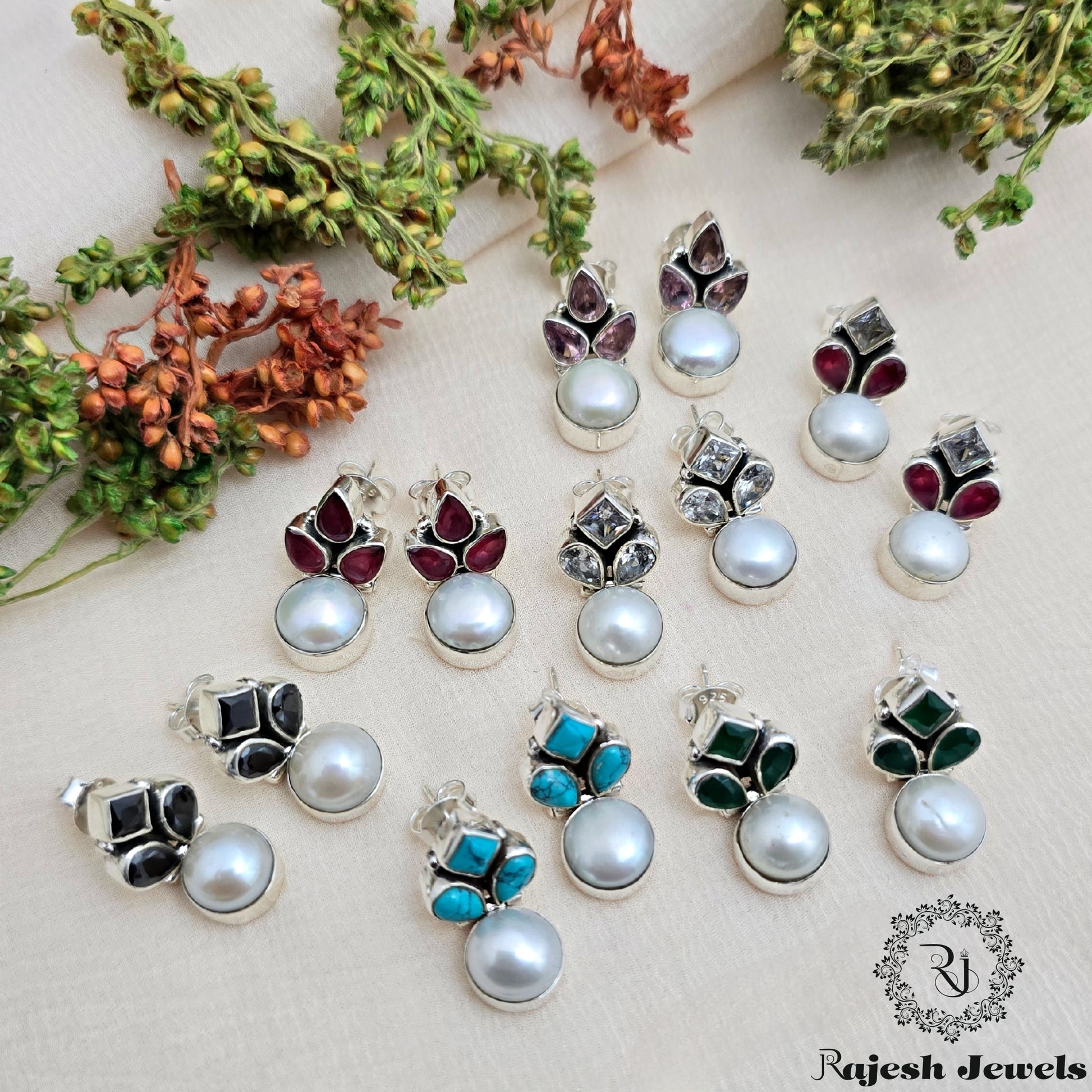 92.5 Pure Silver Oxidised Antique Finish Handmade Earrings Studded With Semi Precious Stones