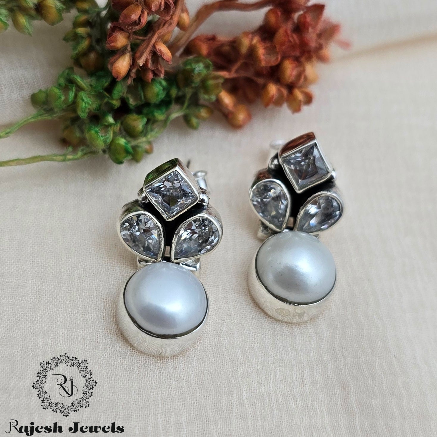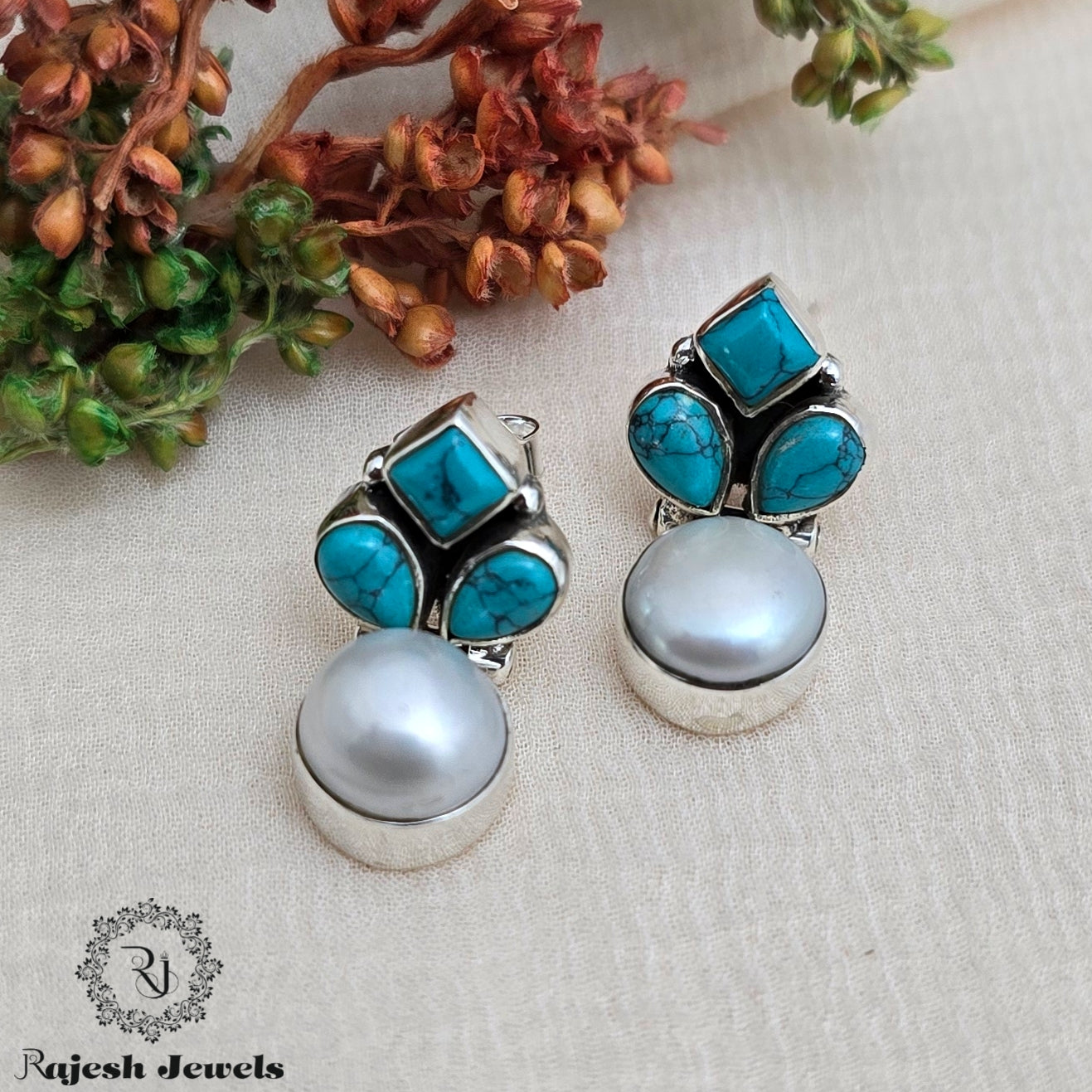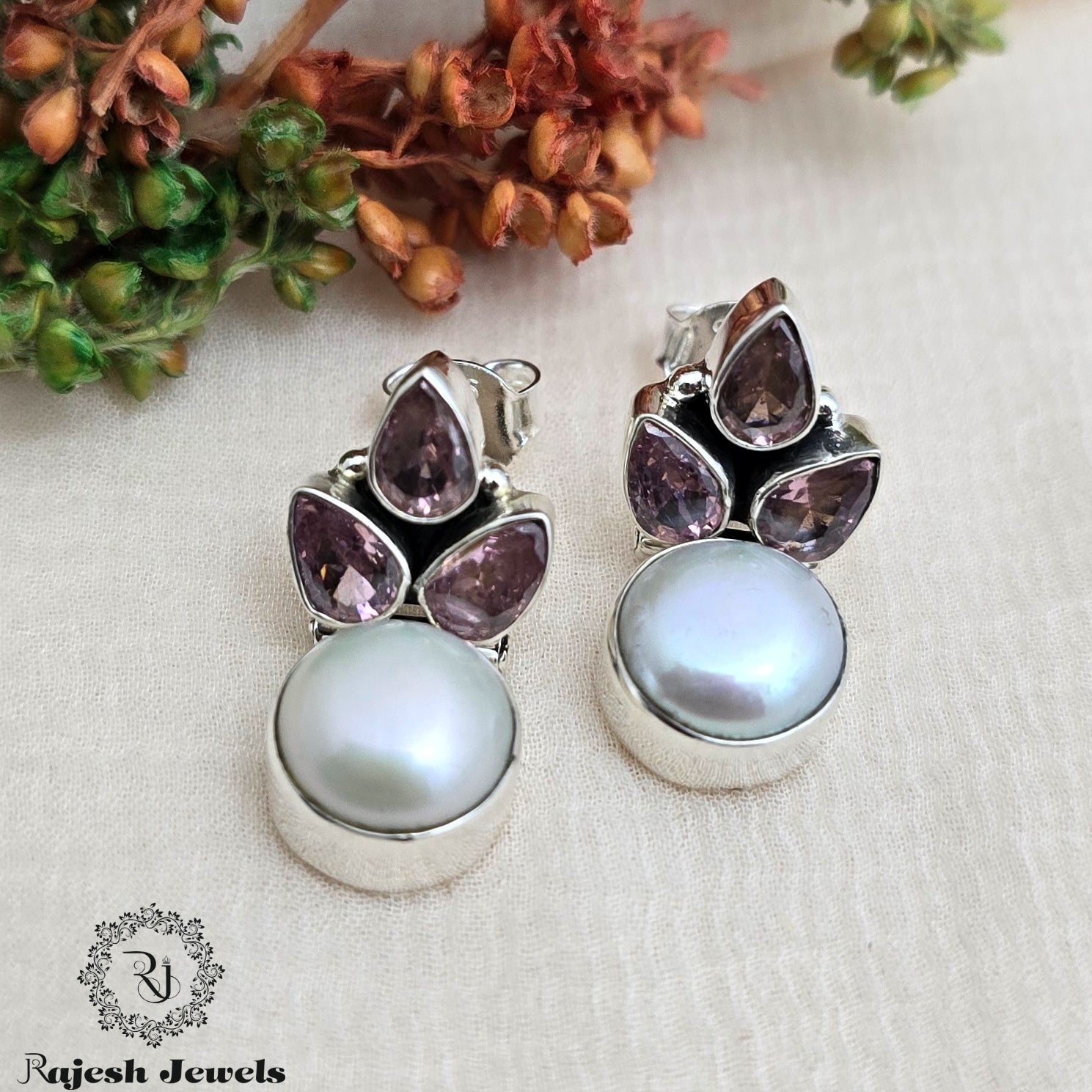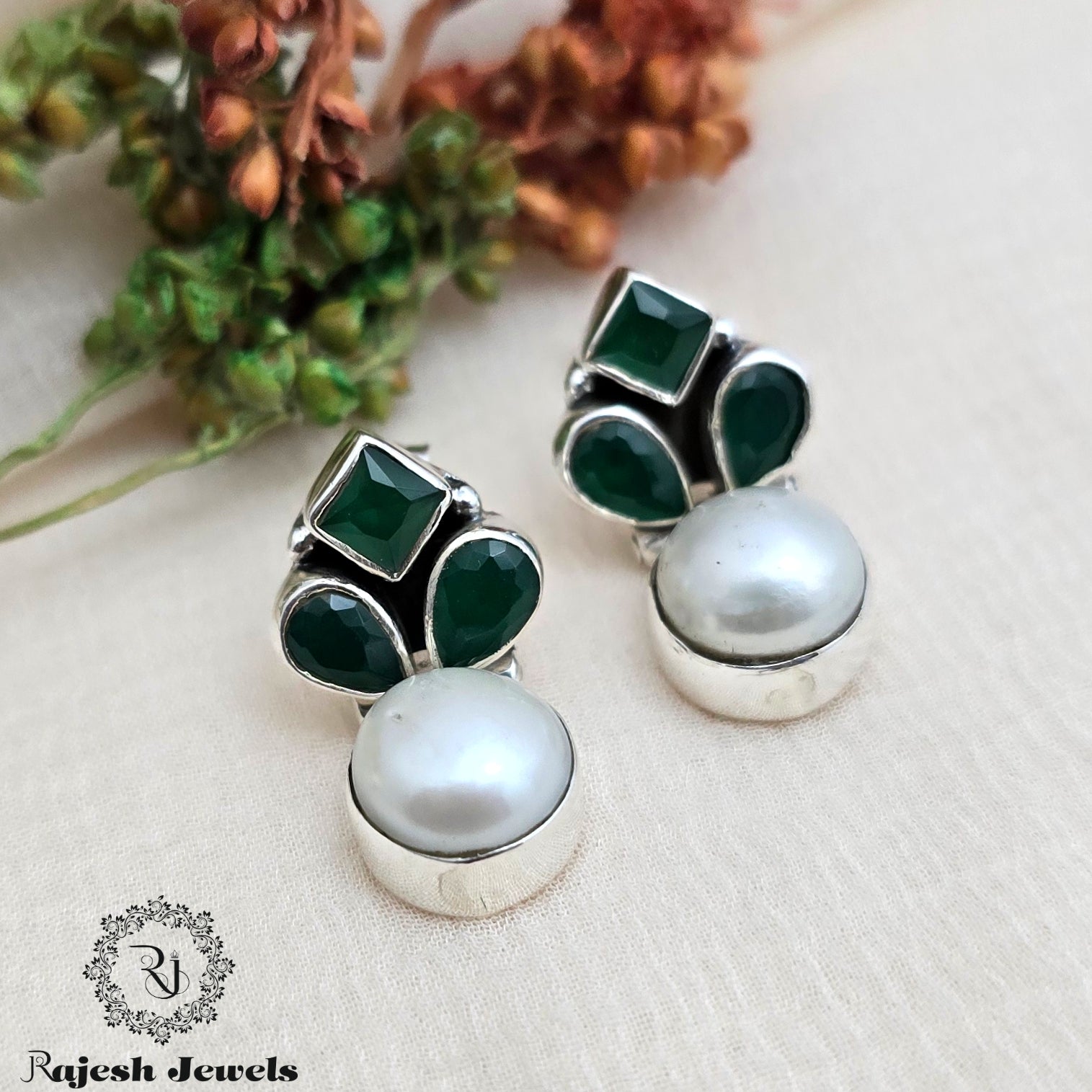 92.5 Pure Silver Oxidised Antique Finish Handmade Earrings Studded With Semi Precious Stones