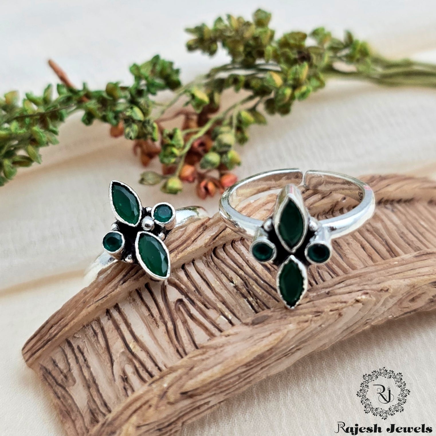 Enhance your everyday style with these 92.5 Pure Silver Oxidised Antique Finish Handmade Toe Rings, beautifully studded with semi-precious cutstones.