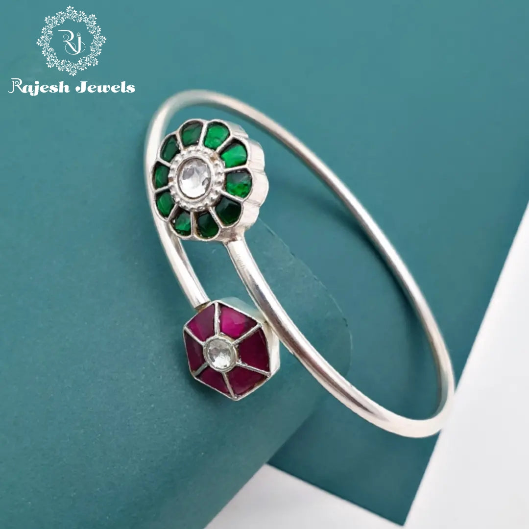 92.5 Pure Silver Hand Kada Studded With Semi Precious Stones
