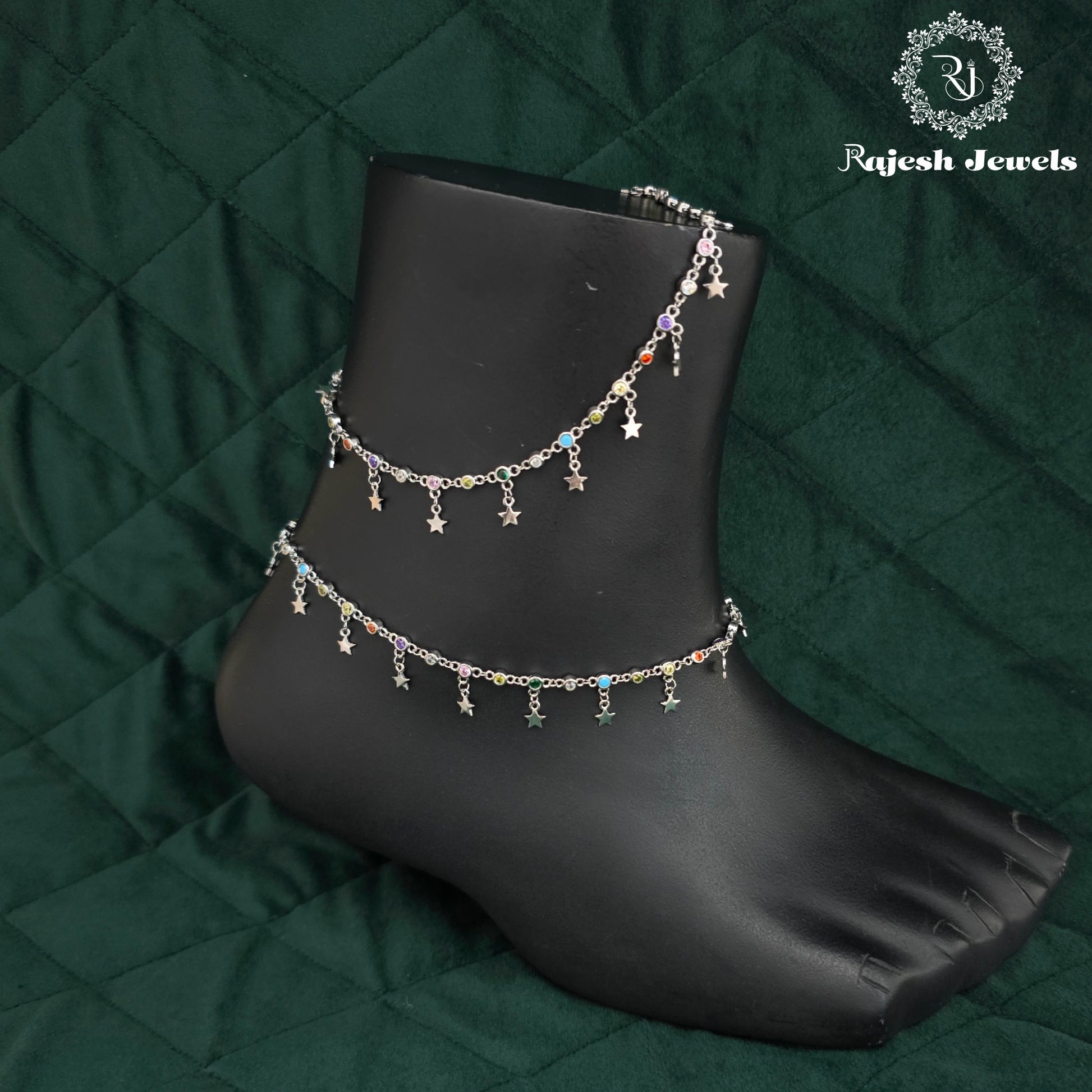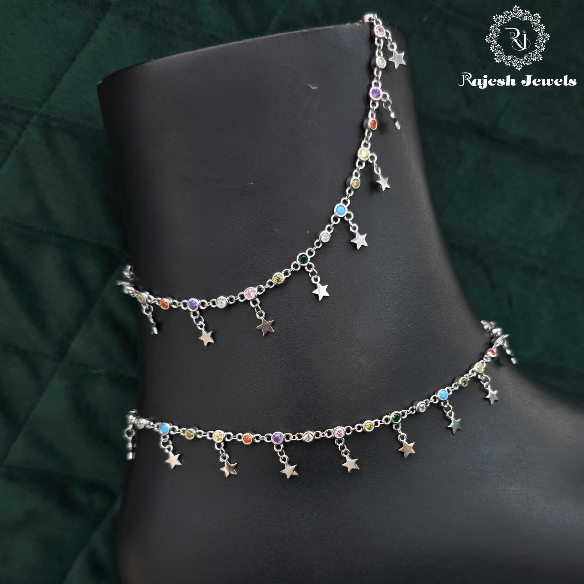 92.5 Pure Sterling Silver Cz Anklet Studded With Semi Precious Stones