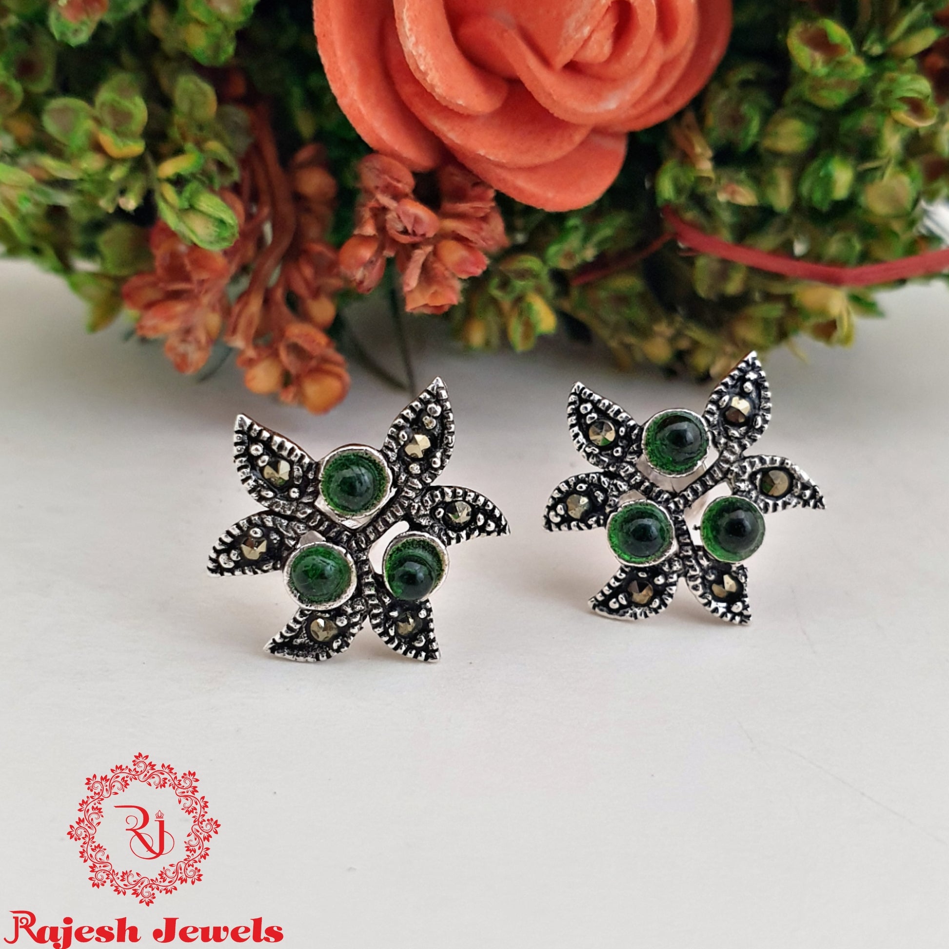 92.5 Pure Sterling Silver Earrings Studded With Semi Precious Stones.