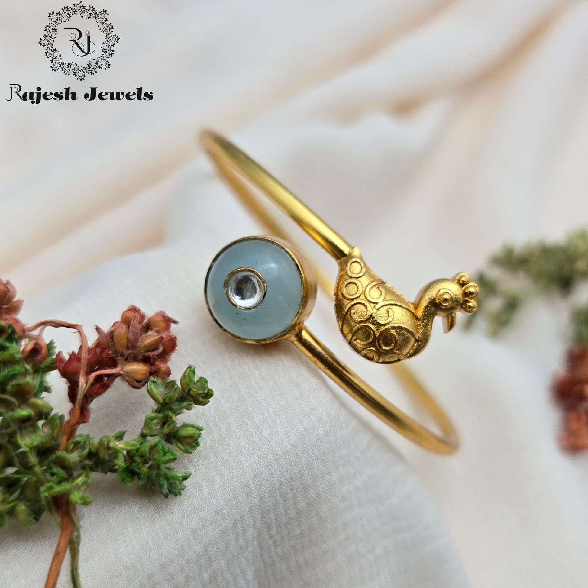 92.5 Pure Silver 22K Gold Polish Hand Kada Studded With Semi Precious