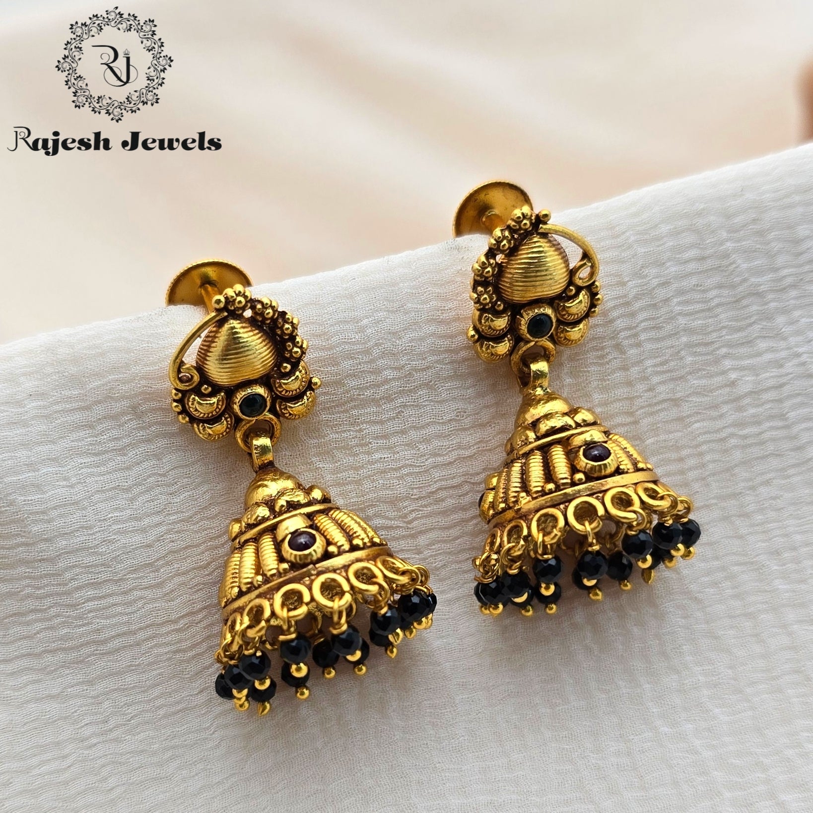 Fascinating Black Beaded Silver Gold Polished Jhumka