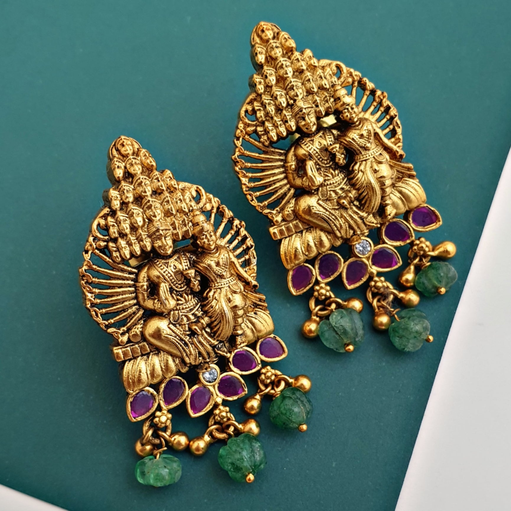 92.5 Pure Silver Temple Chandbali Earrings Studded With Semi Precious Stones