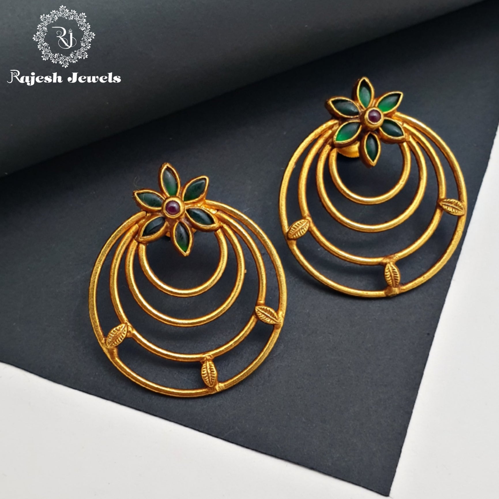 92.5 Pure Silver 22K Gold Polish Chandbali Earrings Studded With Semi Precious Stones