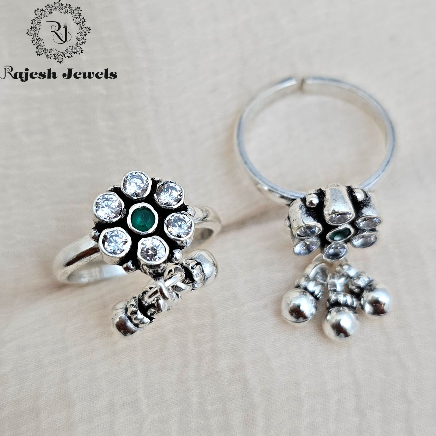 92.5 Pure Silver Oxidised Antique Finish Handmade Cutstone Toerings Studded With Semi Precious Stones ( Sound Less Toering )