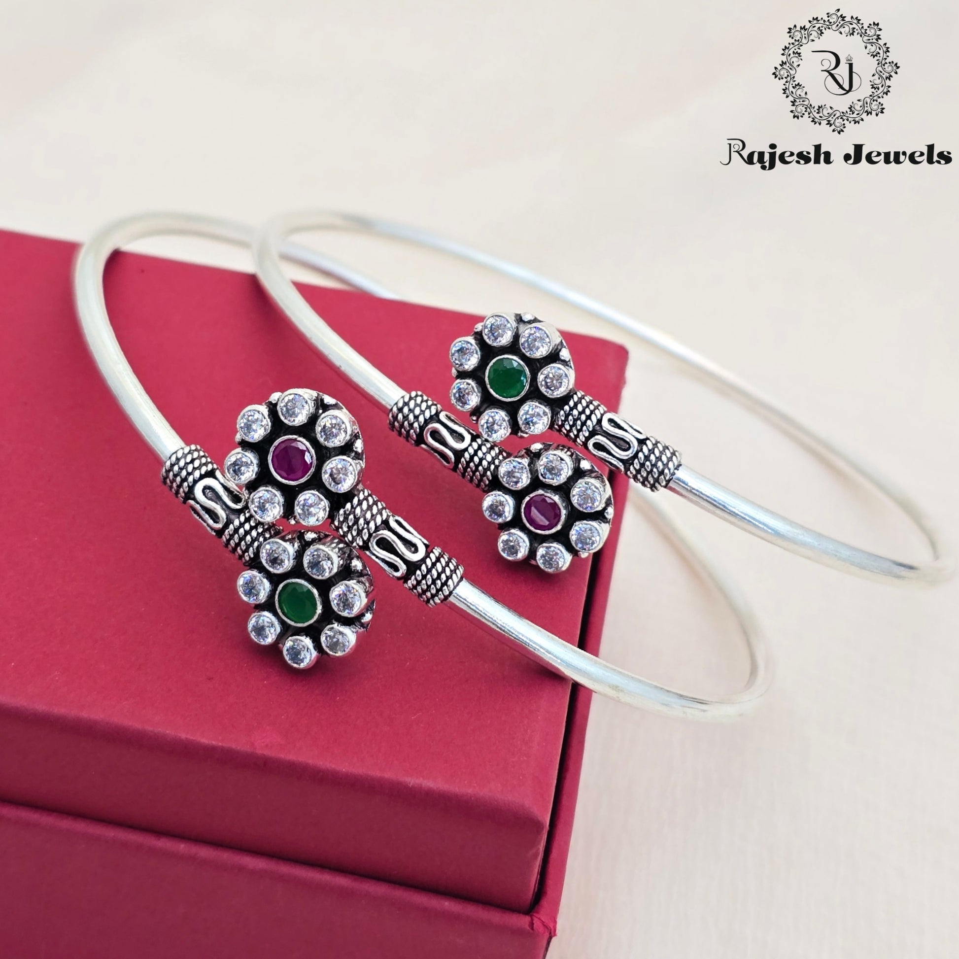 92.5 Pure Silver Oxidised Antique Finish Handmade Ankle Kada Studded With Semi Precious Stones