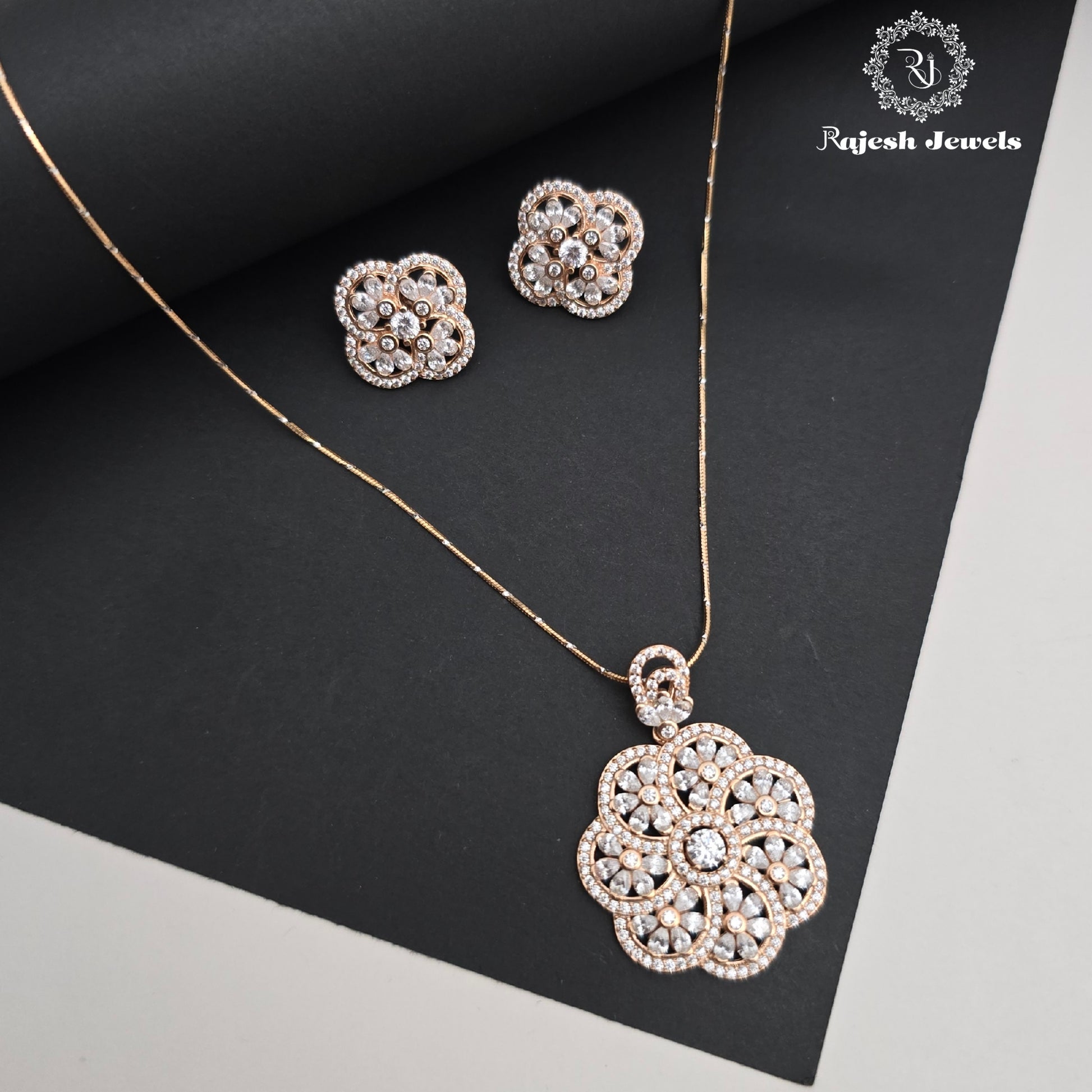 92.5 Pure Sterling Silver Rosegold Finish Pendent Set Studded With Semi Precious Stones