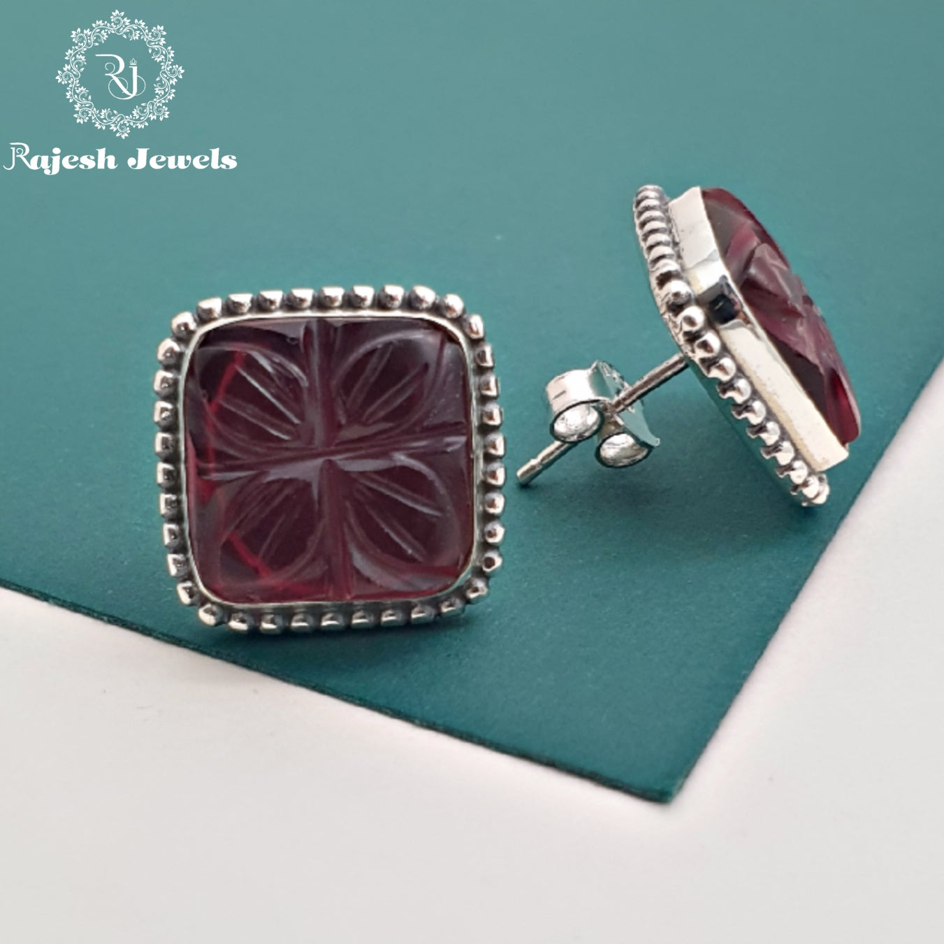 92.5 Pure Silver Oxidised Antique Finish Handmade Earrings Studded With Semi Precious Stones