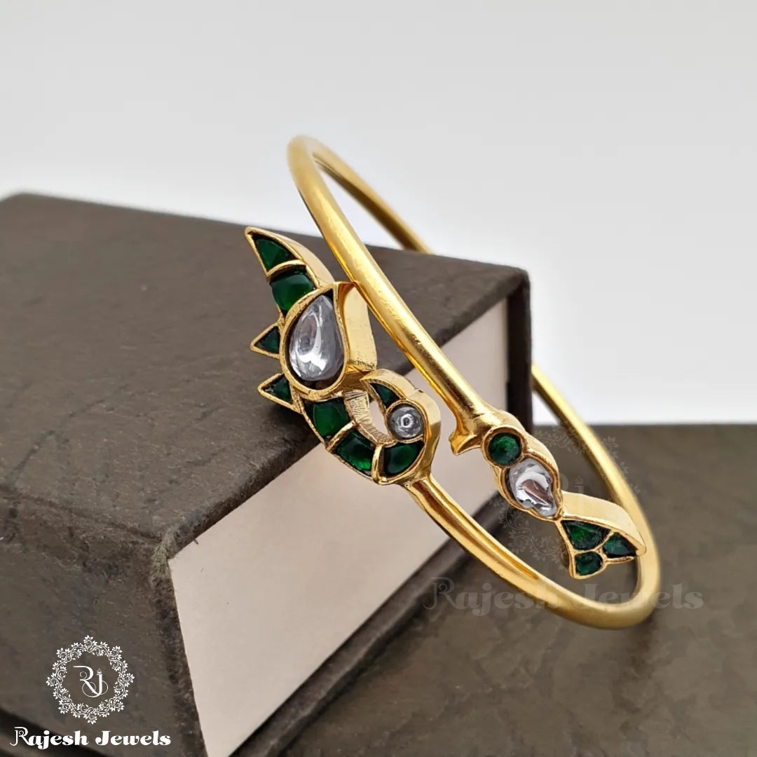 92.5 Pure Silver Handmade Kada With 22K Gold Polish Studded With Semi Precious Stones
