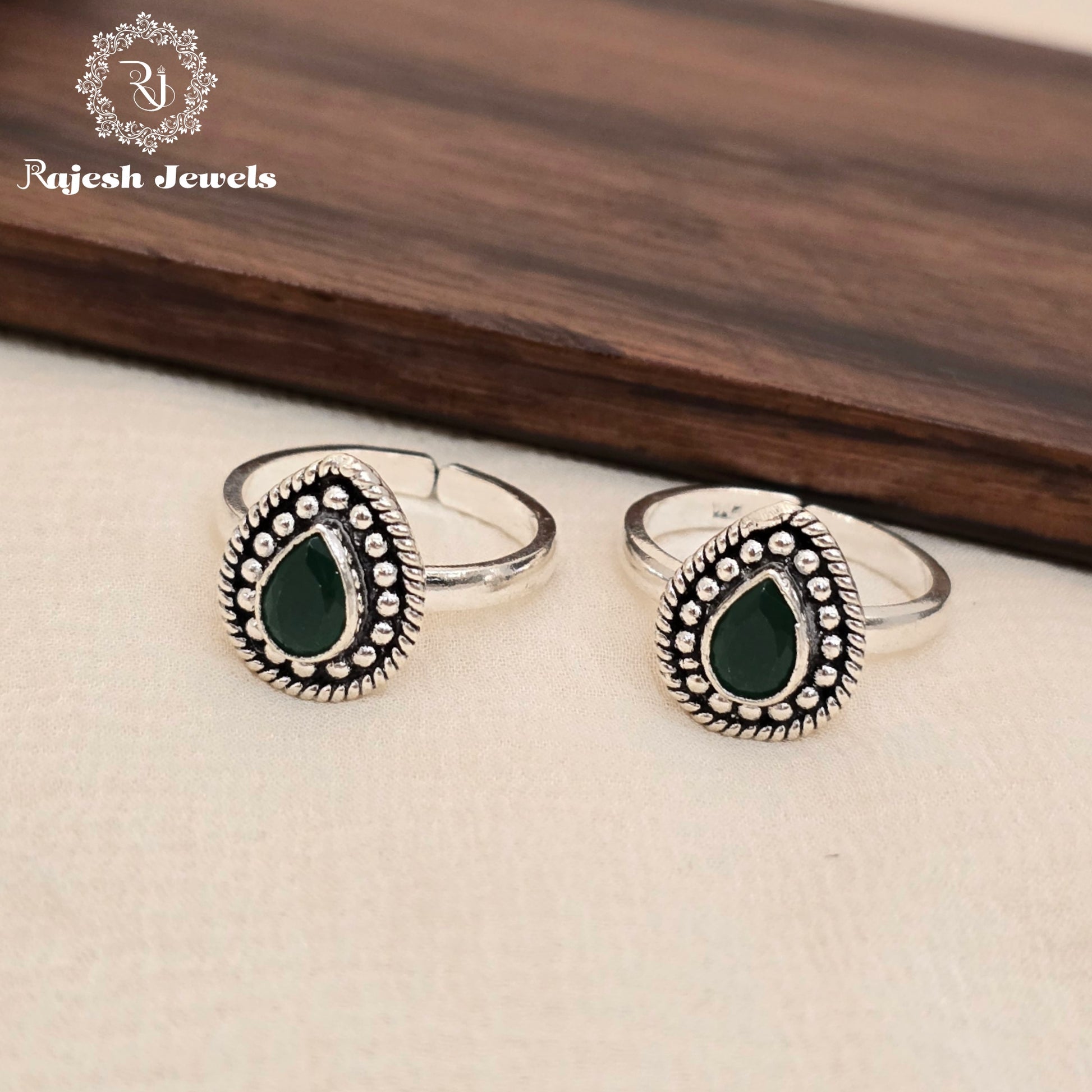 92.5 Pure Silver Plain White Finish Handmade Toerings Studded With Semi Precious Stones
