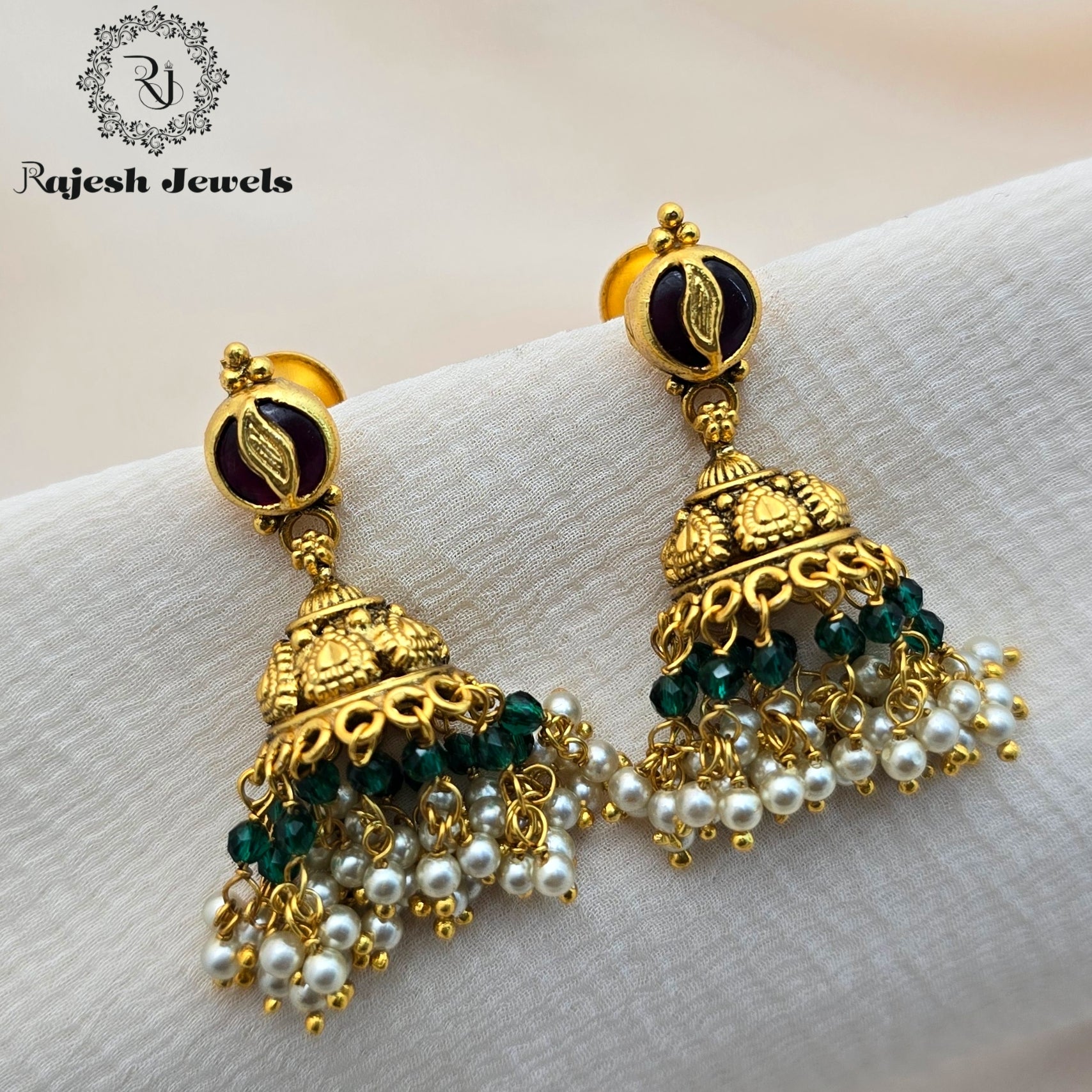 92.5 Pure Silver 22K Gold Polish Jumka Earrings Studded With Semi Precious Stones