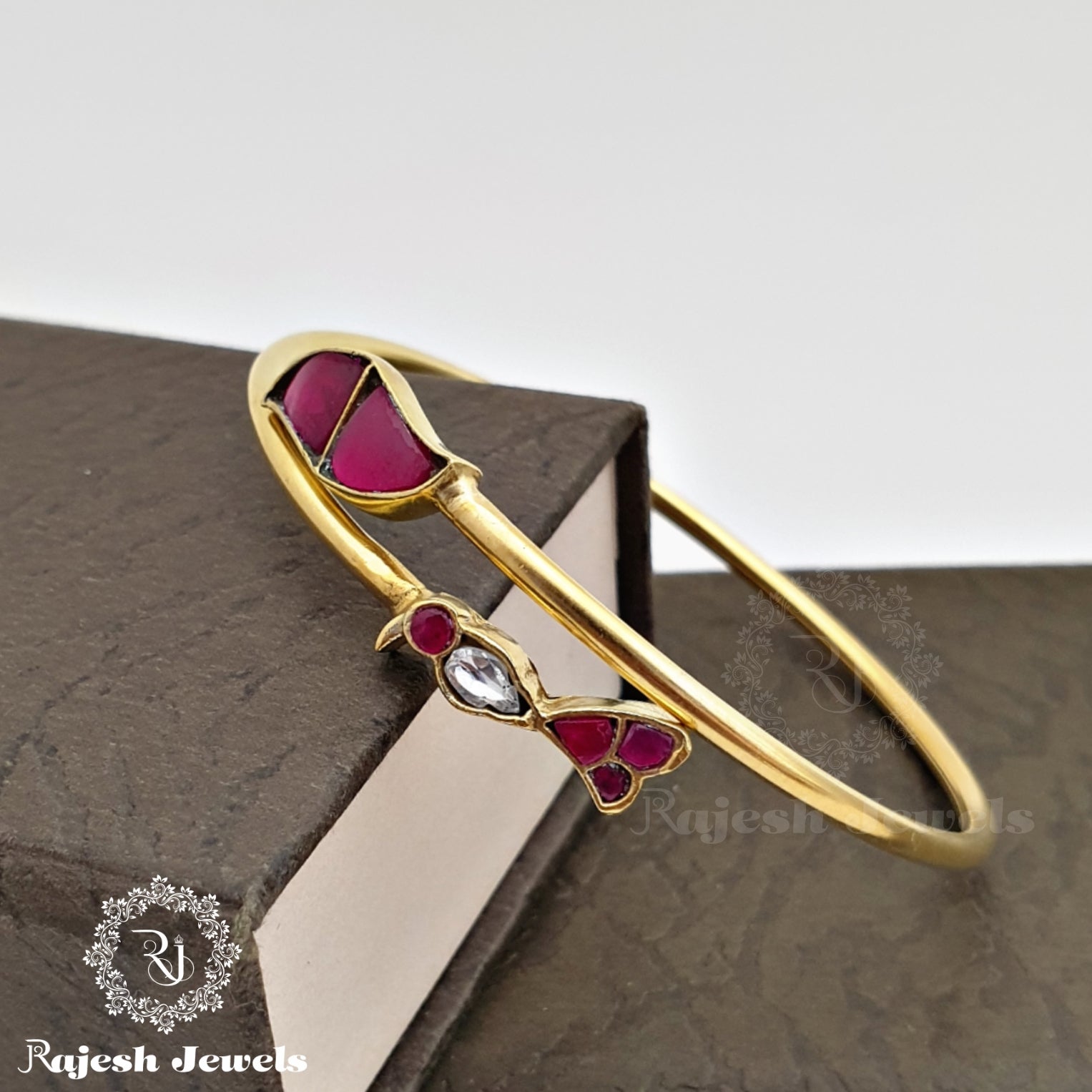 92.5 Pure Silver Handmade Kada With 22K Gold Polish Studded With Semi Precious Stones