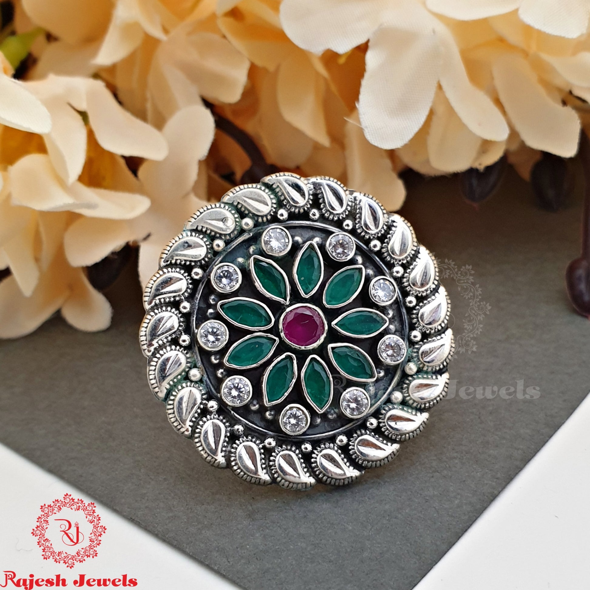 Green Flora Silver Cocktail Ring