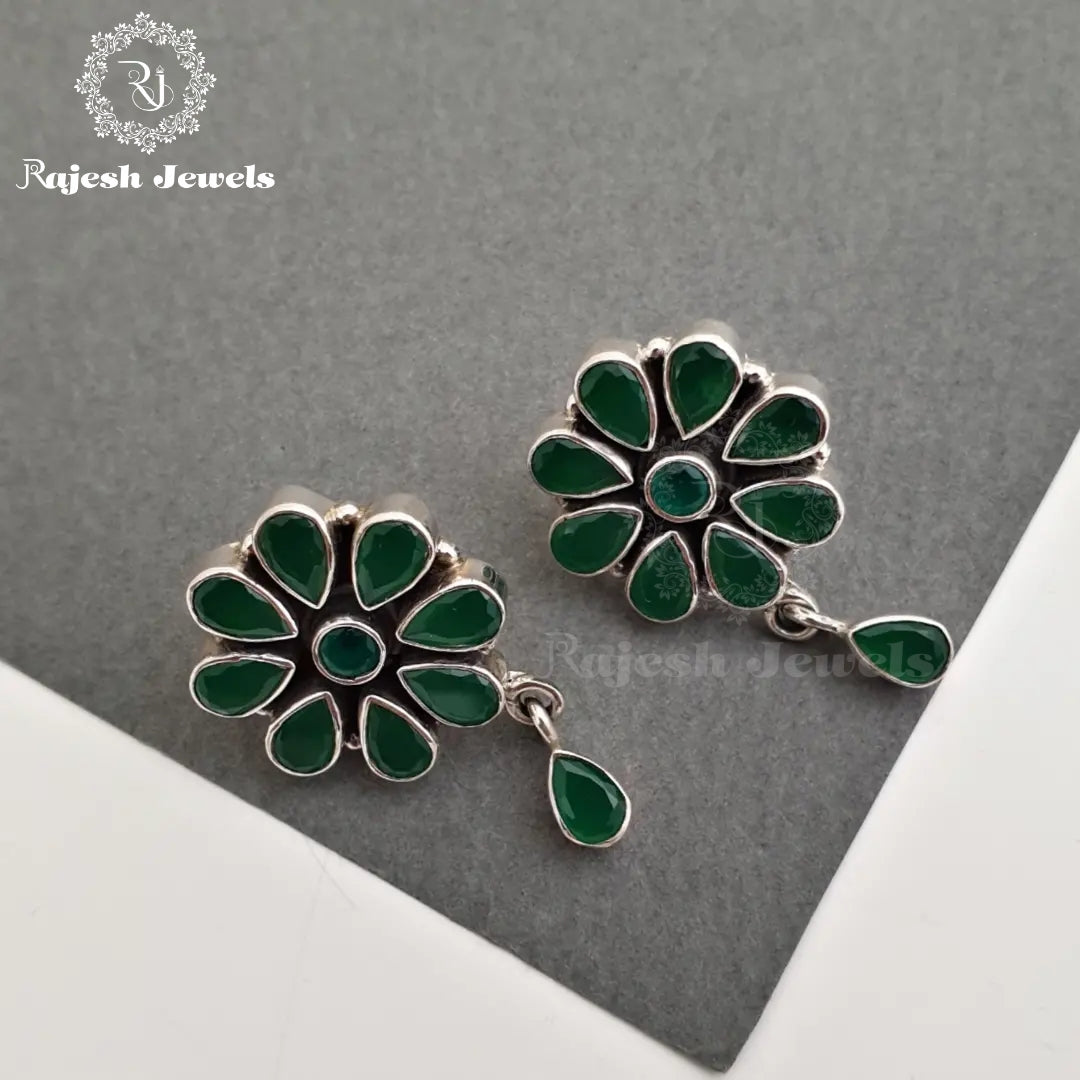 92.5 Pure Silver Oxidised Antique Finish Handmade Earrings Studded With Semi Precious Stones