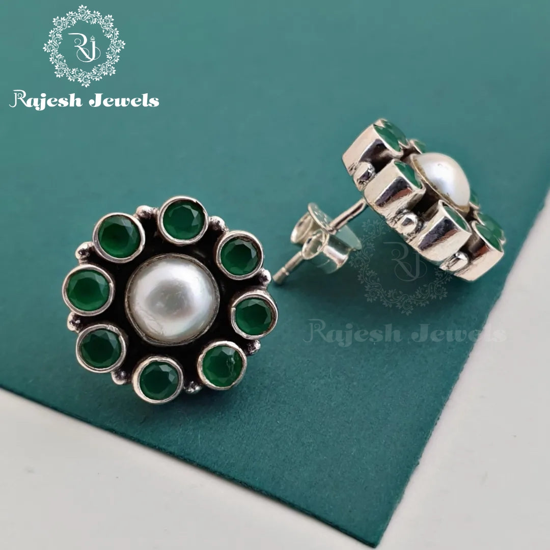 Green & Pearl Cutstone Studs