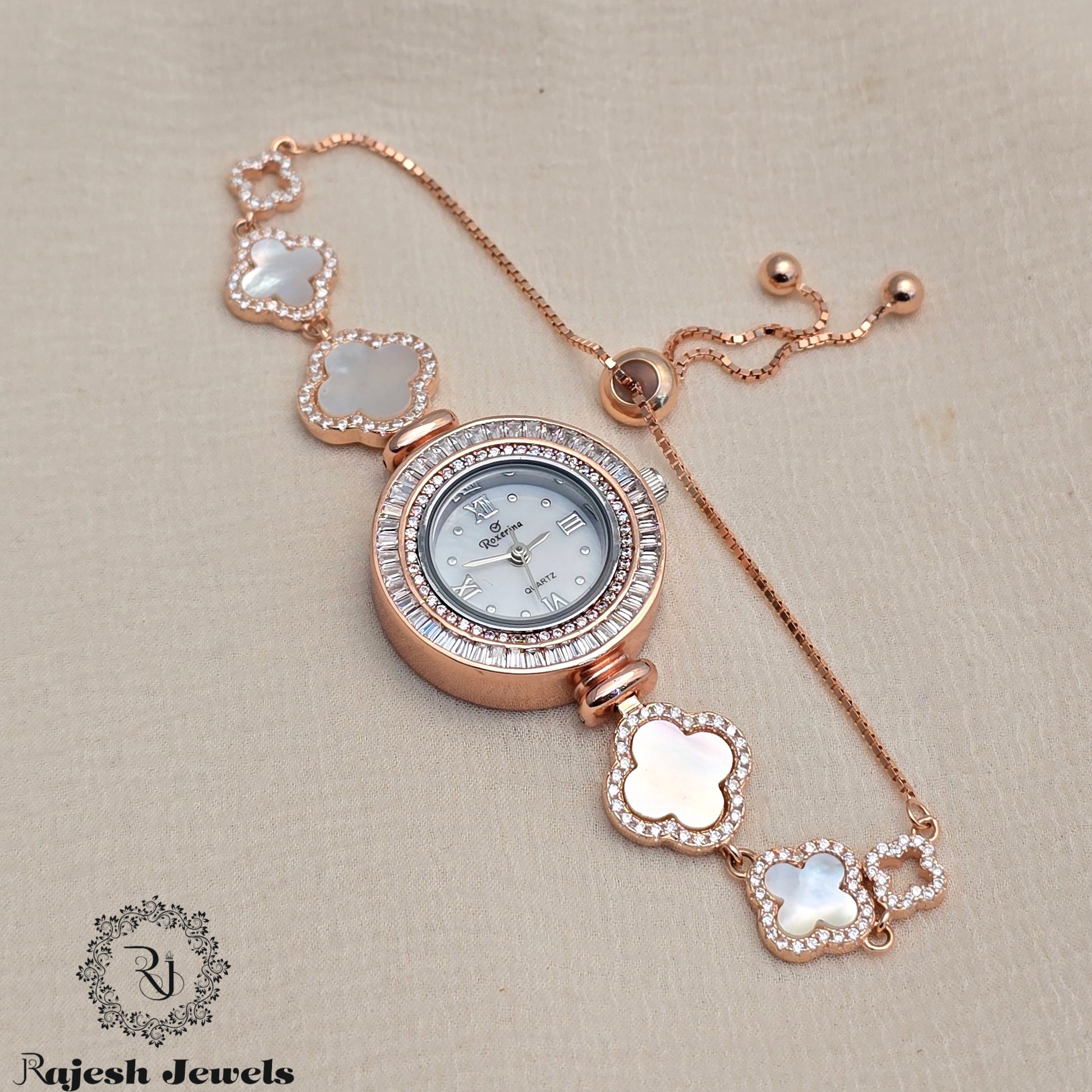 Crafted in 925 Sterling Silver Rosegold and studded with semi-precious Zircon stones, this elegant watch blends timeless design with refined sparkle.