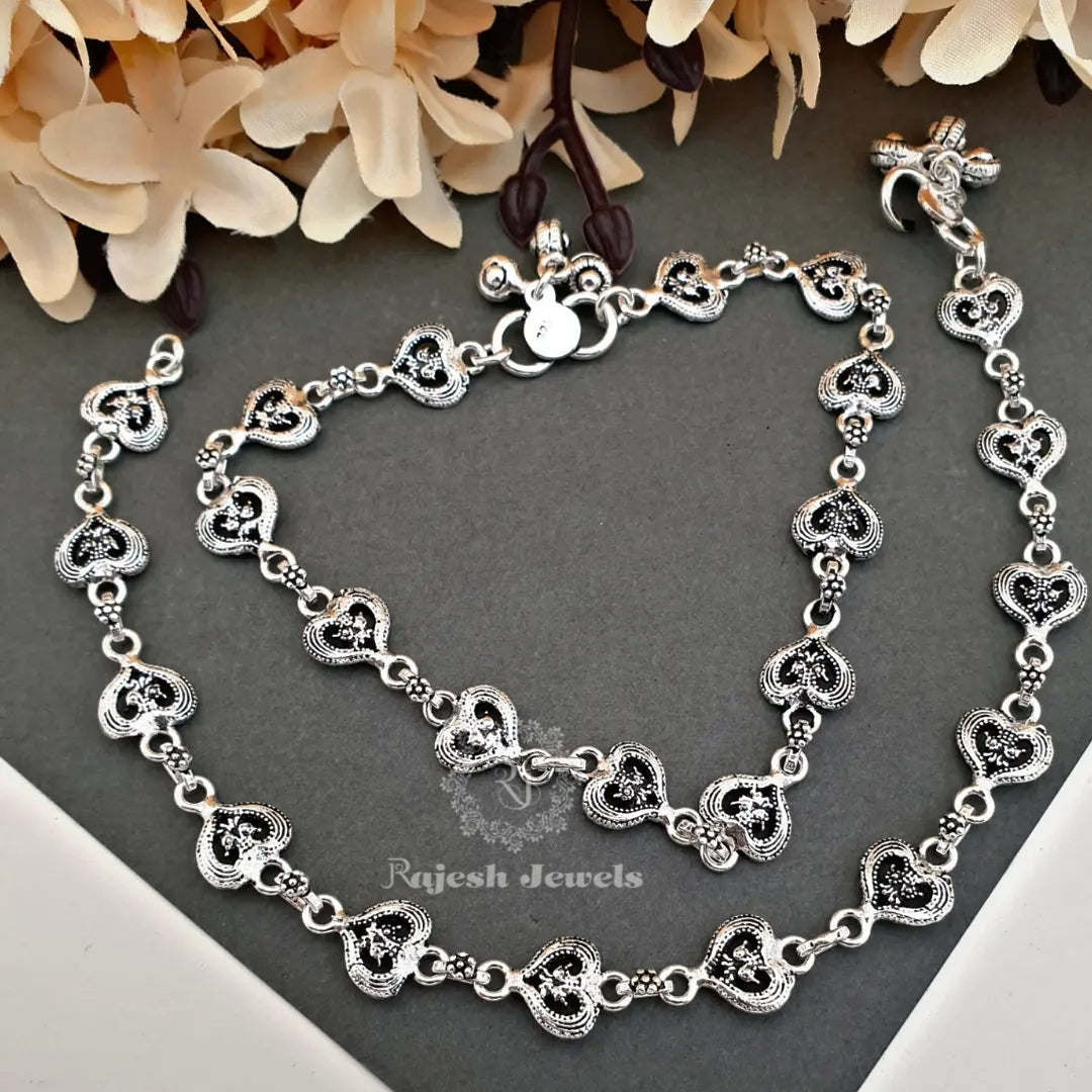 92.5 Pure Silver Oxidised Antique Finish Handmade Anklet.
