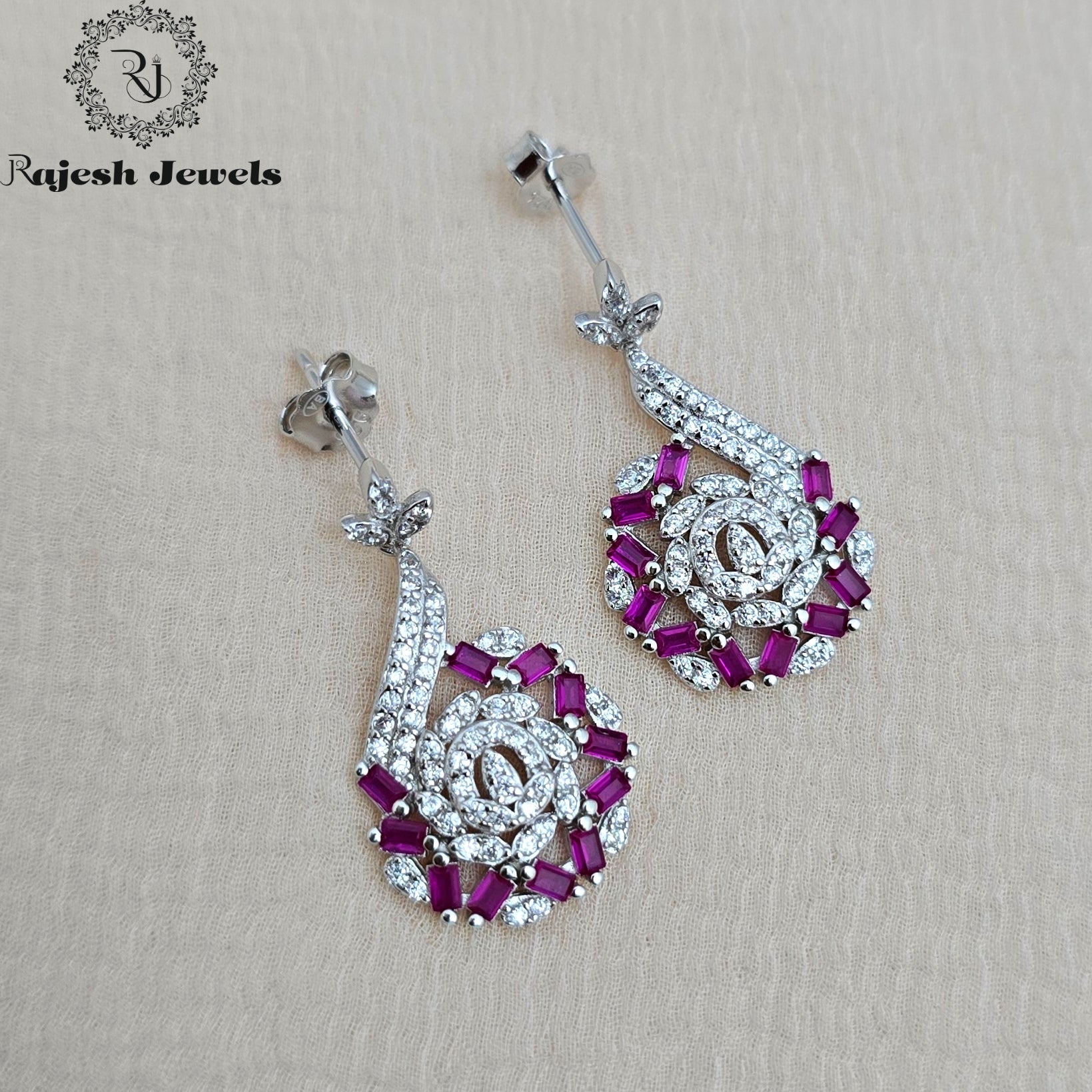 92.5 Pure Sterling Silver Cz Hanging Earrings Studded With Semi Precious Stones