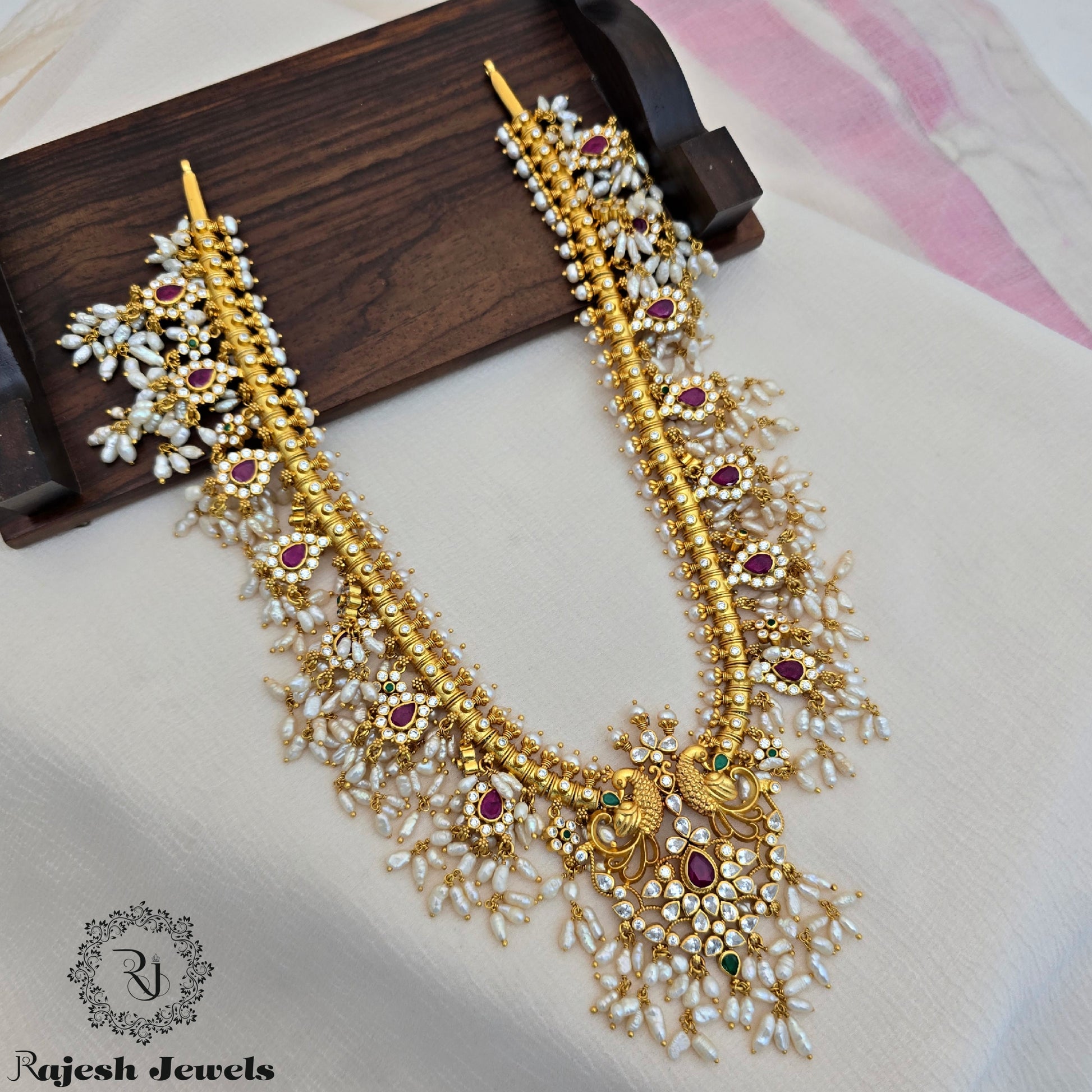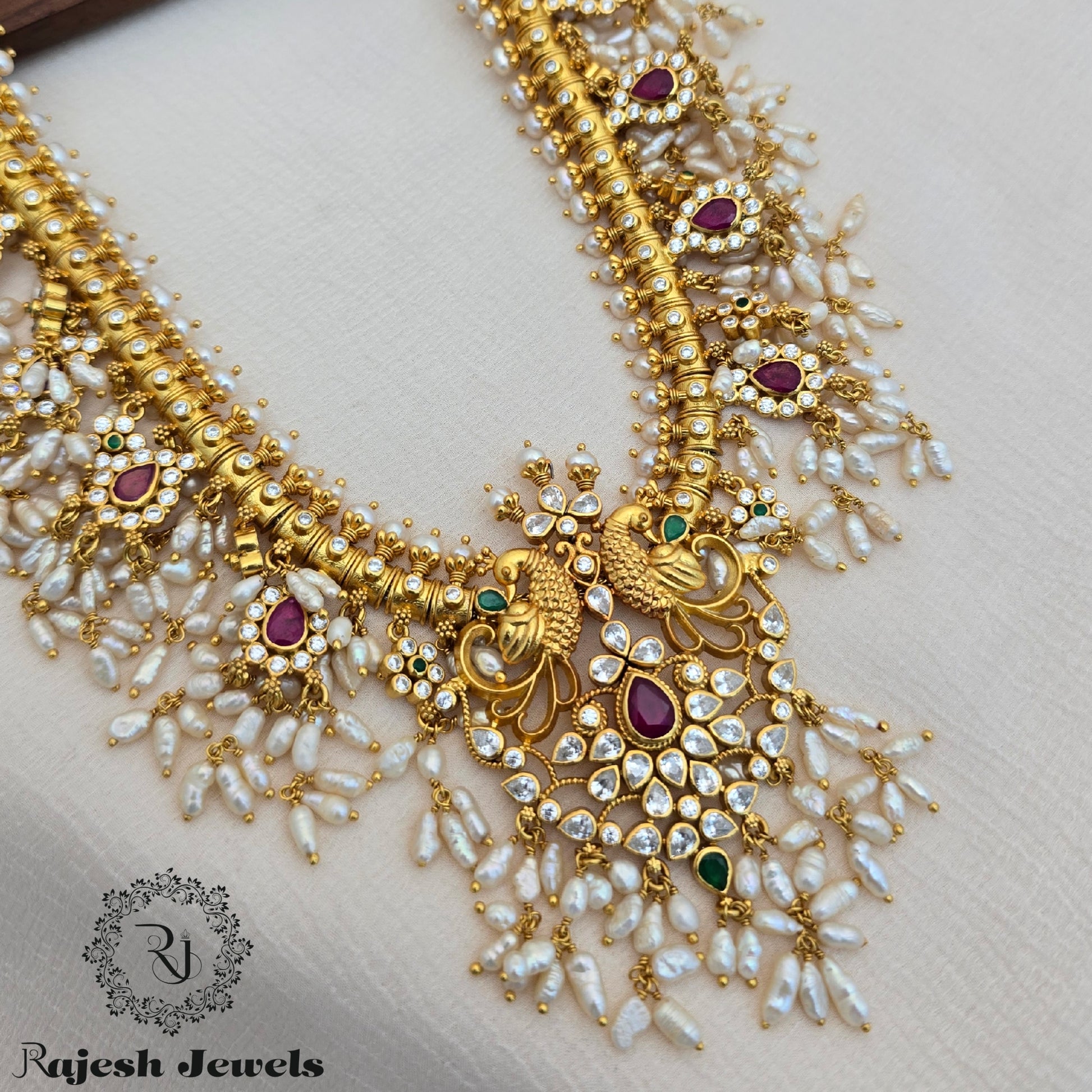 92.5 Pure Silver 22K Gold Plated Necklace Studded With Semi Precious Stone