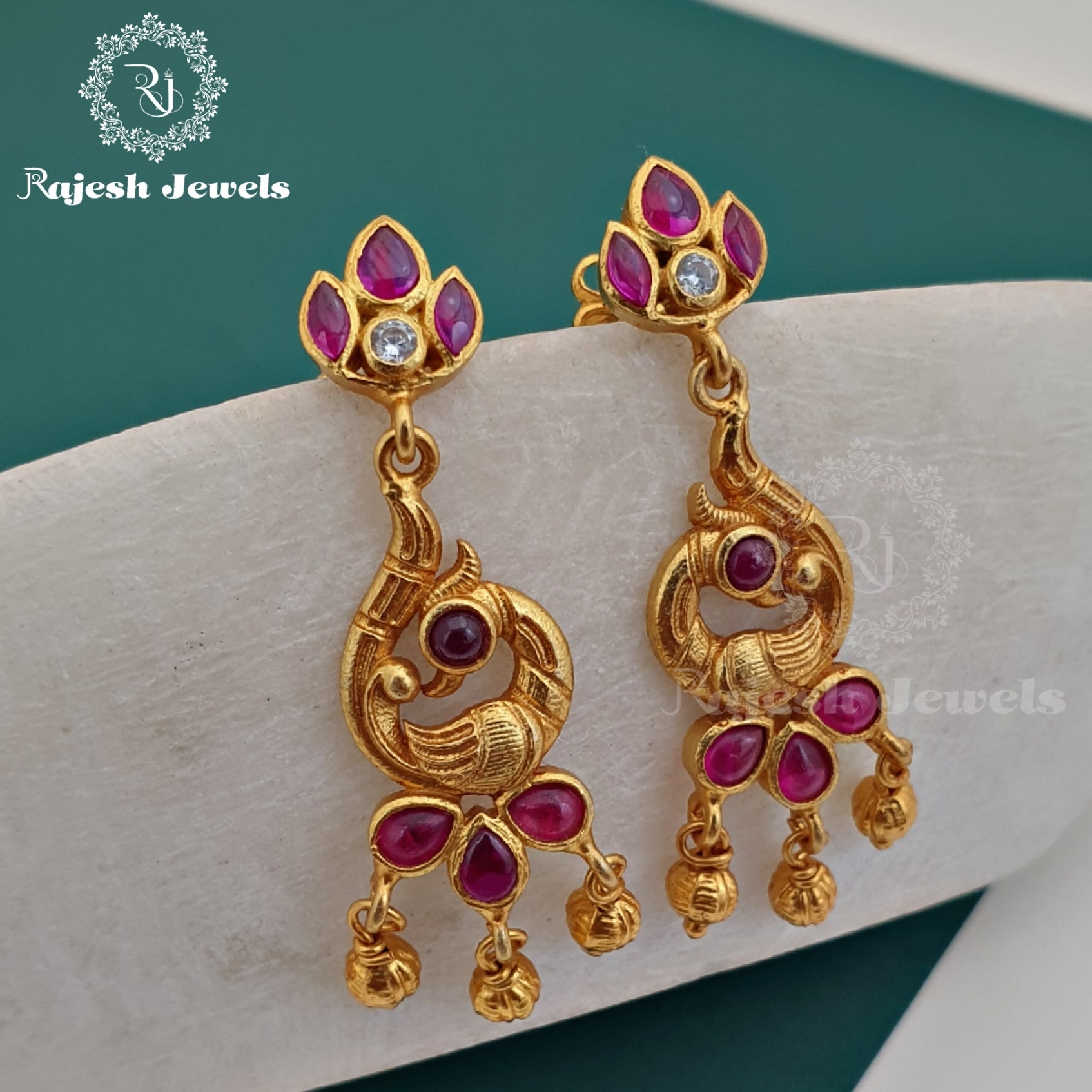 92.5 Pure Silver Temple Chandbali Earrings Studded With Semi Precious Stones