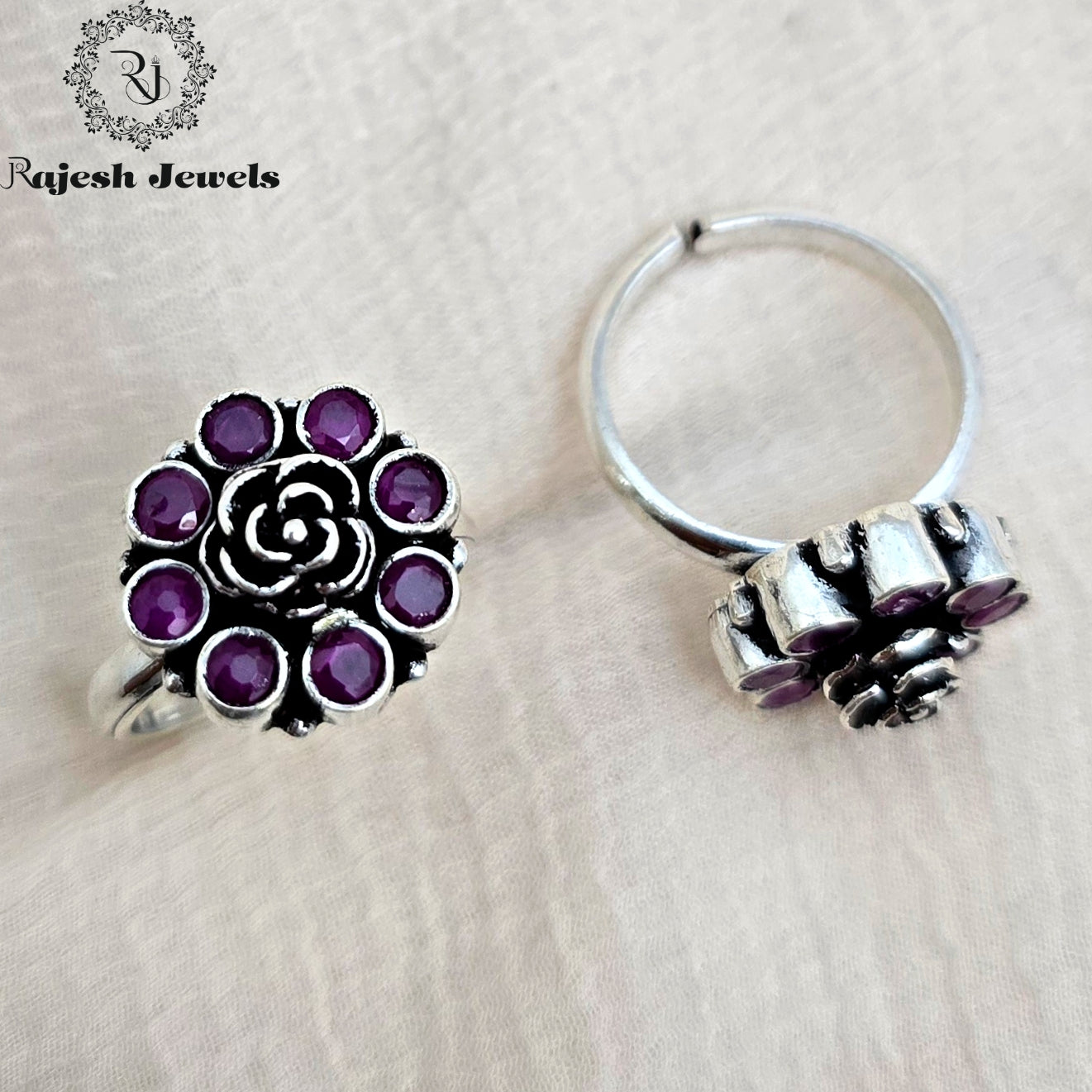 92.5 Pure Silver Oxidised Antique Finish Handmade Cutstone Toerings Studded With Semi Precious Stones