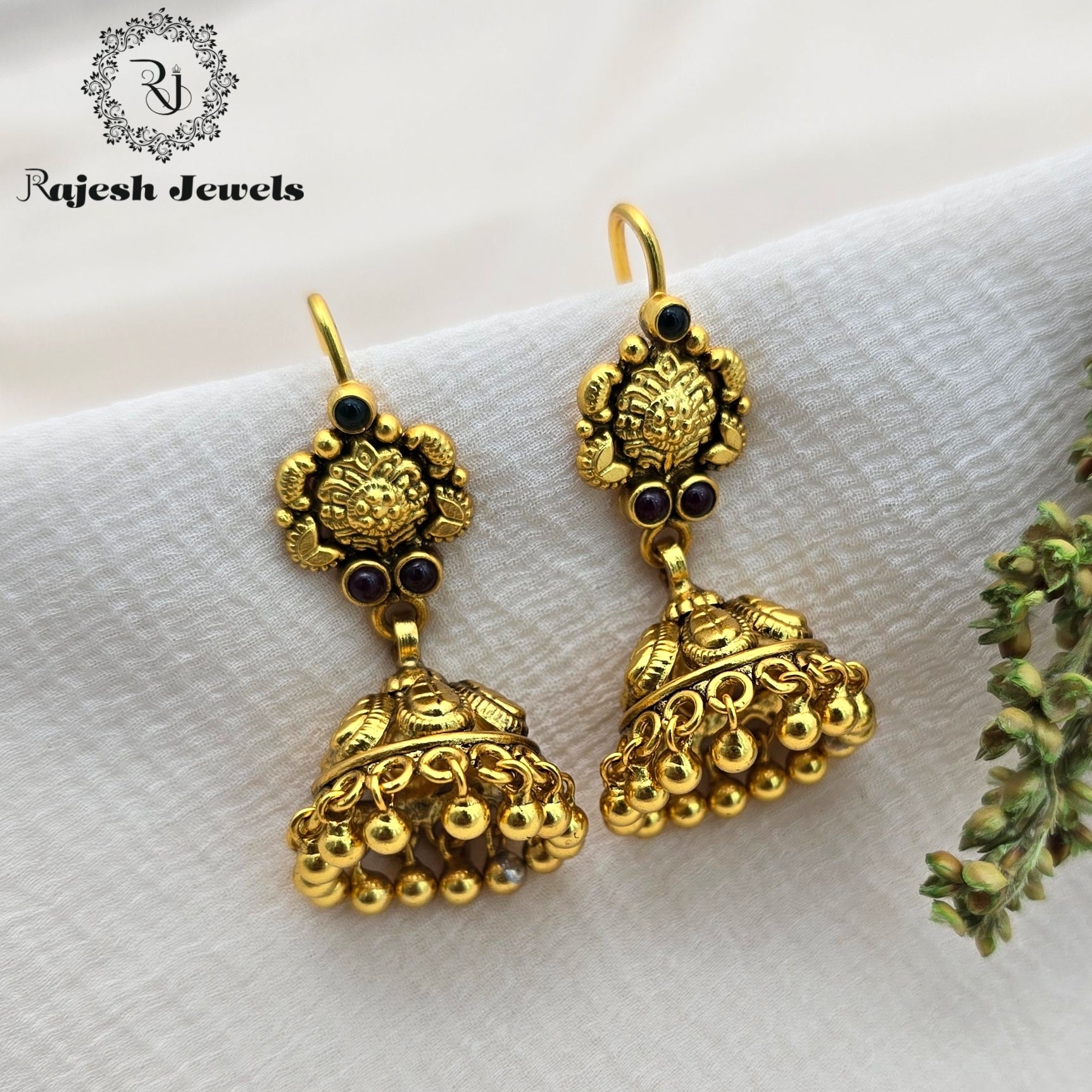 92.5 Pure Silver 22K Gold Polish Jumka Earrings Studded With Semi Precious Stones