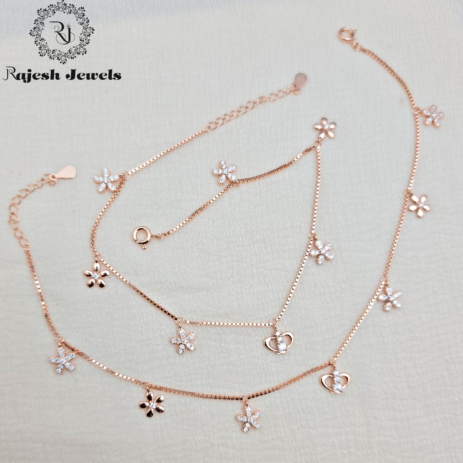 92.5 Pure Sterling Silver Cz Anklet Studded With Semi Precious Stones