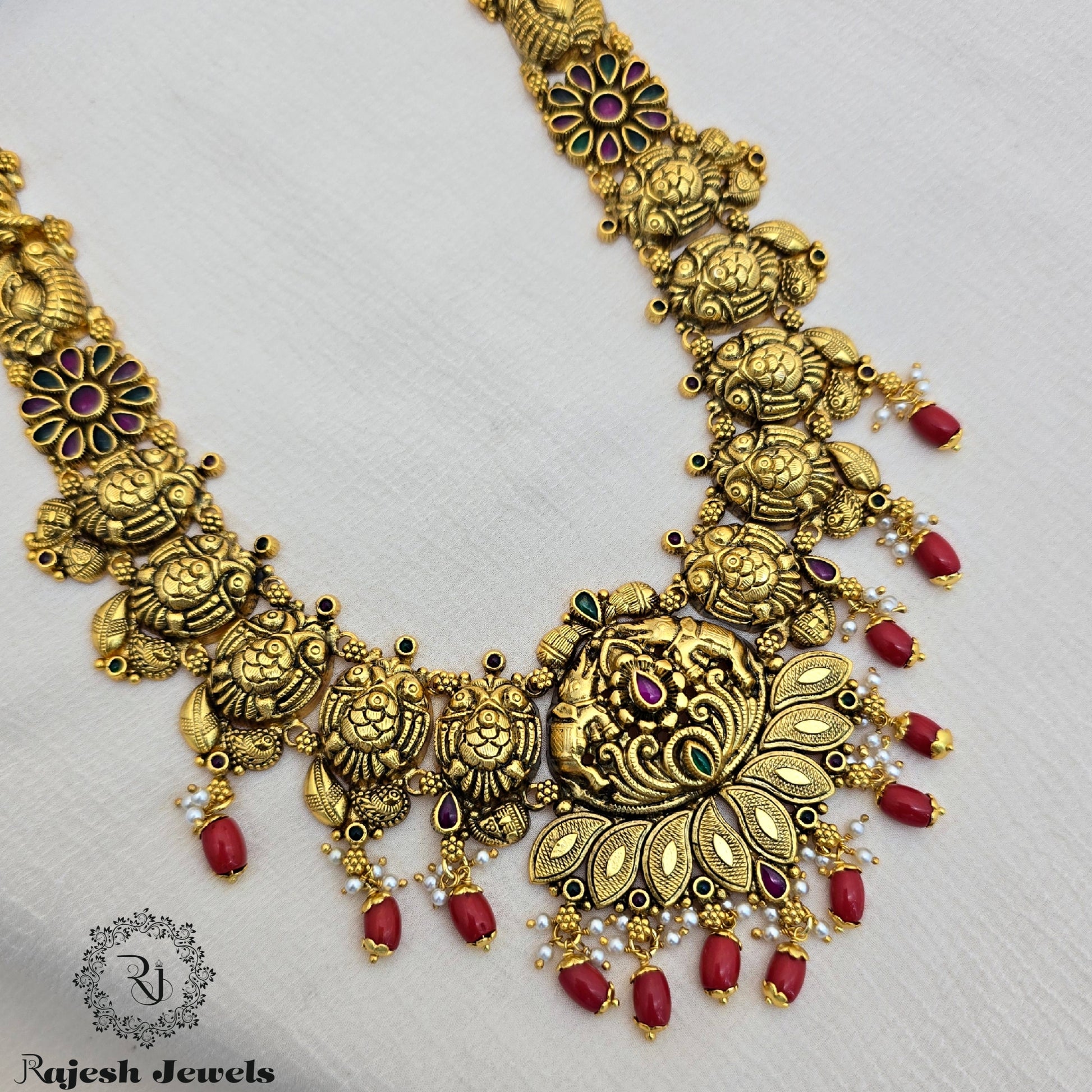 92.5 Pure Silver 22K Gold Plated Necklace Studded With Semi Precious Stone