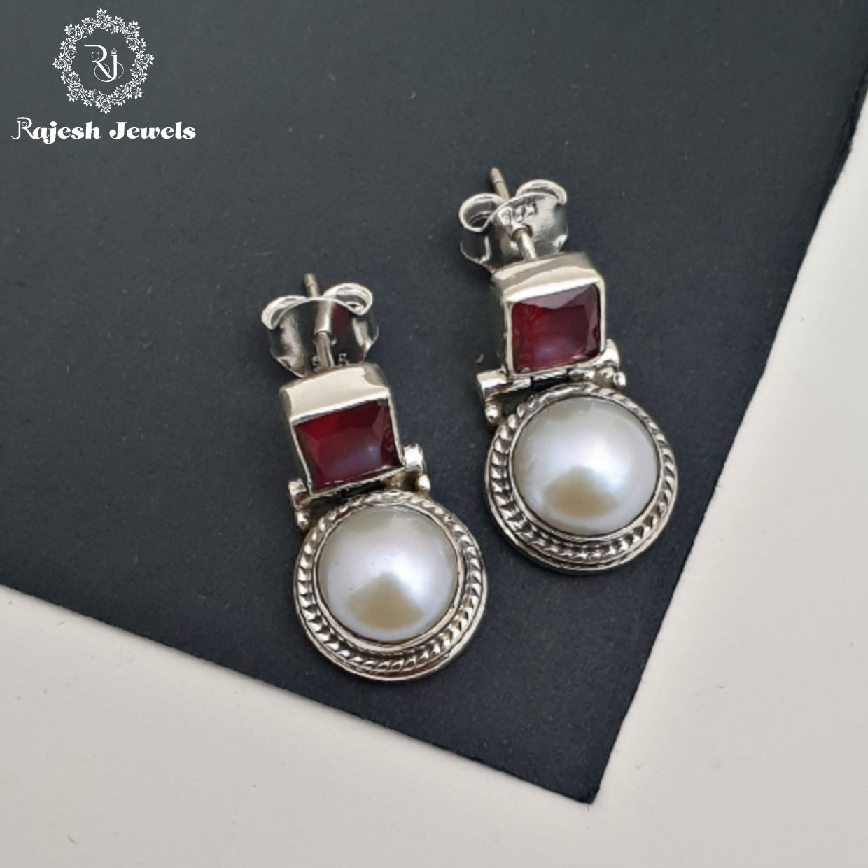 92.5 Pure Silver Oxidised Antique Finish Handmade Earrings Studded With Semi Precious Stones