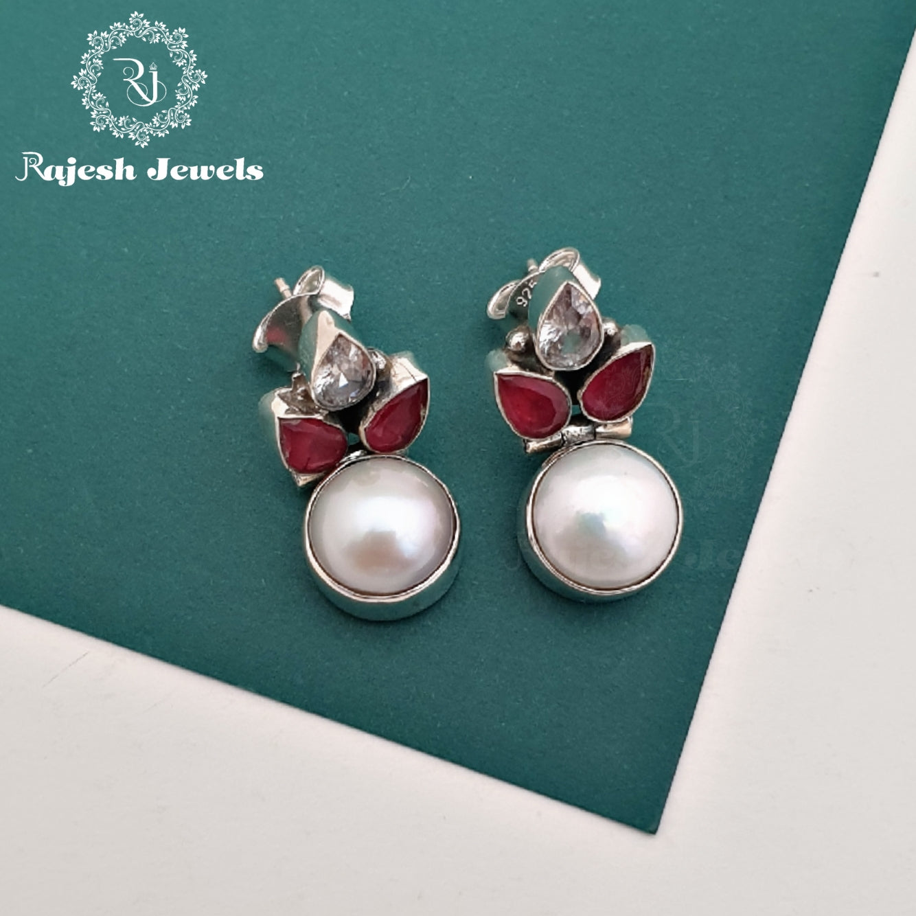 92.5 Pure Silver Oxidised Antique Finish Handmade Earrings Studded With Semi Precious Stones