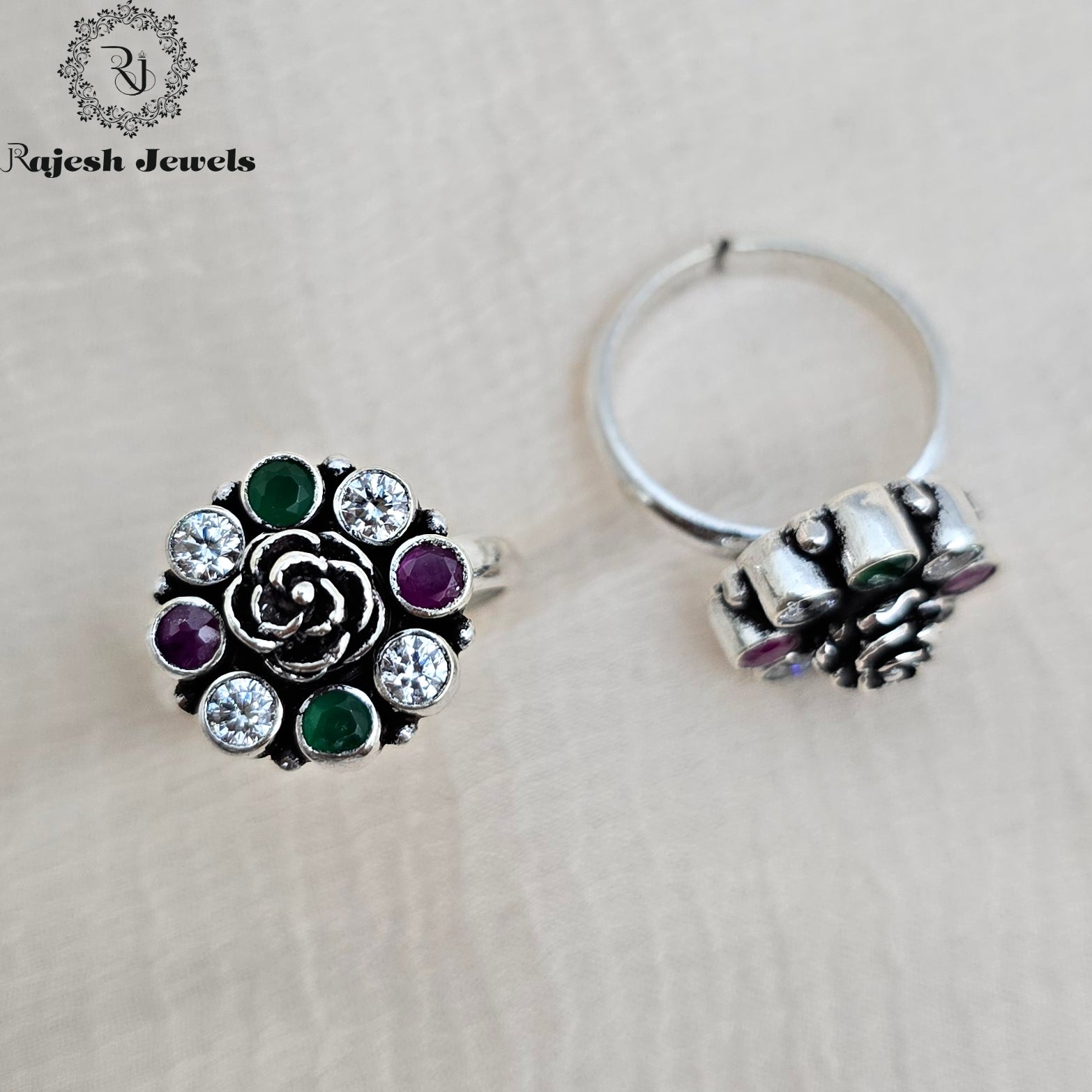 92.5 Pure Silver Oxidised Antique Finish Handmade Cutstone Toerings Studded With Semi Precious Stones