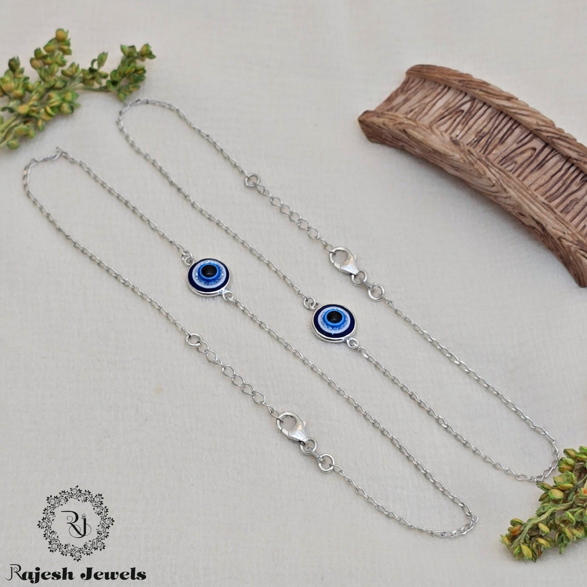 92.5 Pure Sterling Silver Sleek Anklet Studded With Evil Eye