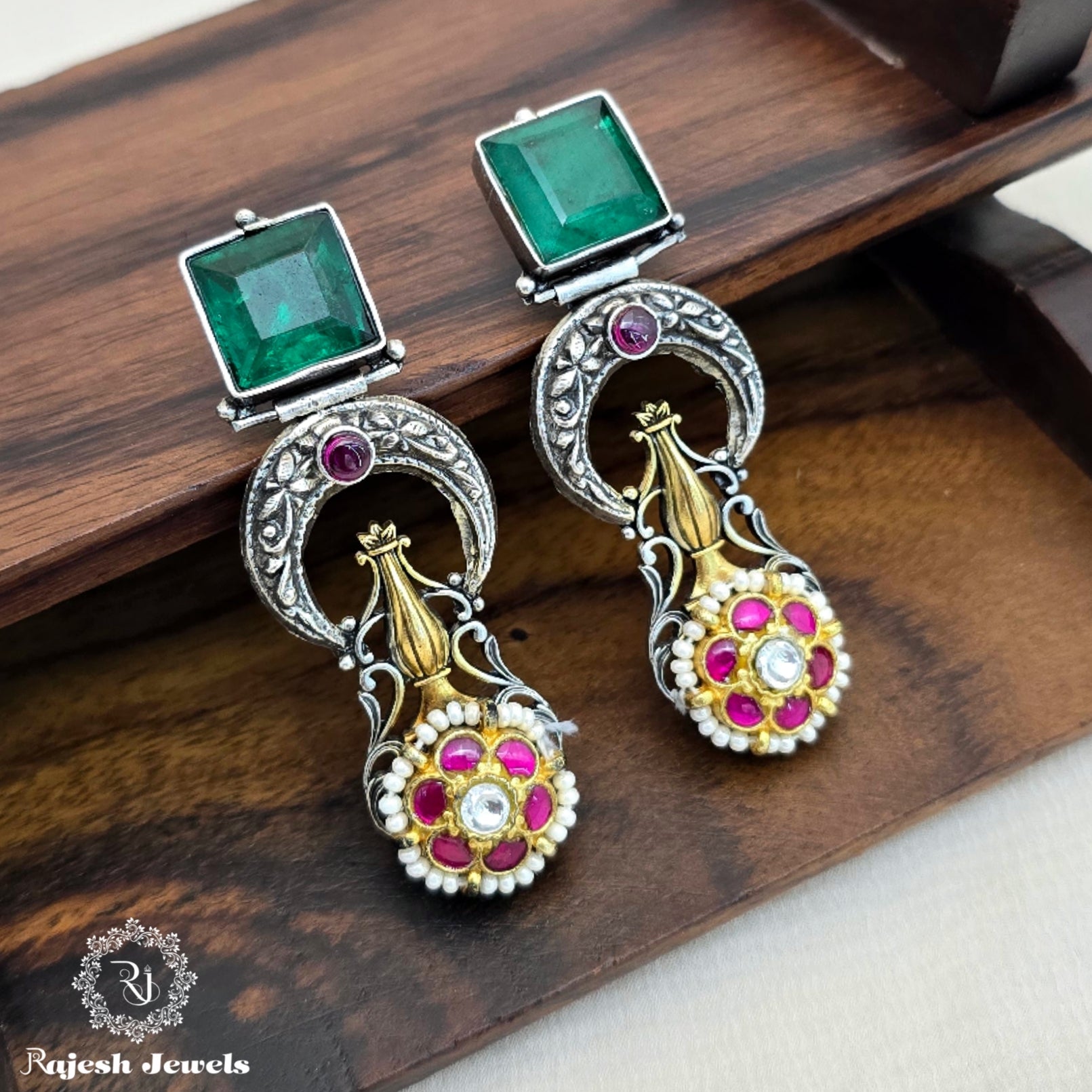 92.5 Pure Silver Oxidised Antique Finish Handmade Chandbali Earrings Studded With Semi Precious Stone