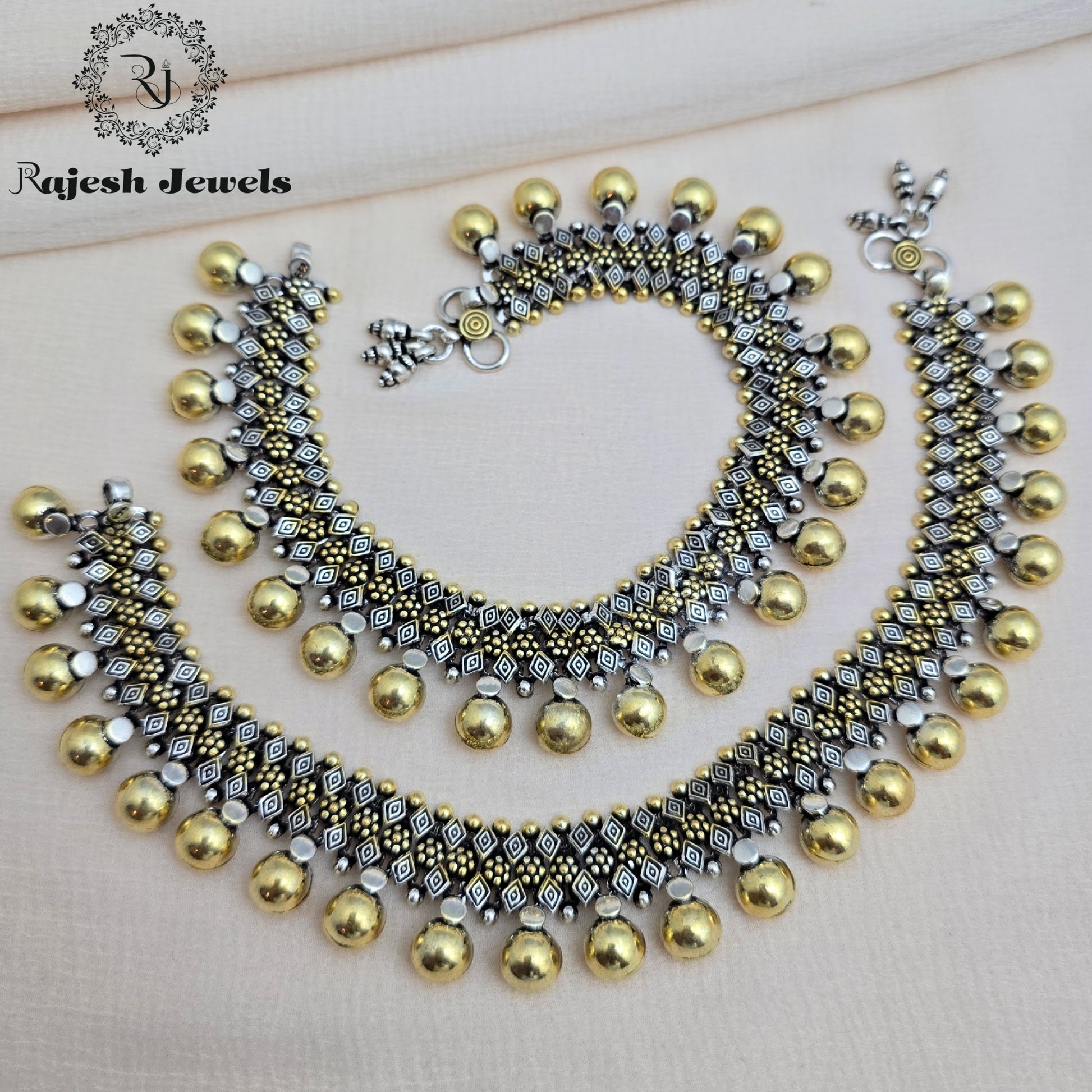 92.5 Pure Silver Oxidised Antique Finish Handmade Dual Tone Anklet