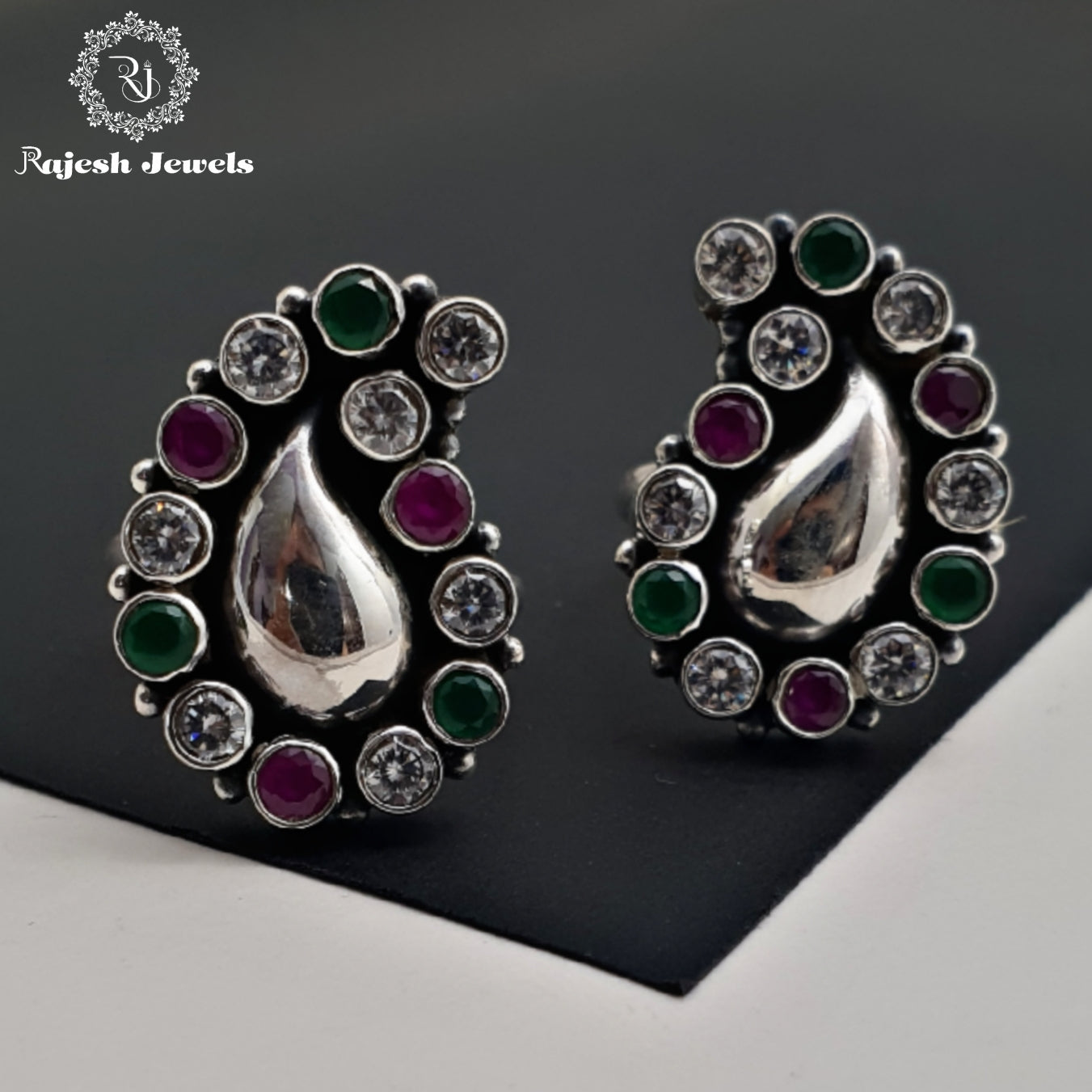 92.5 Pure Silver Oxidised Antique Finish Handmade Toerings Studded With Semi Precious Stones