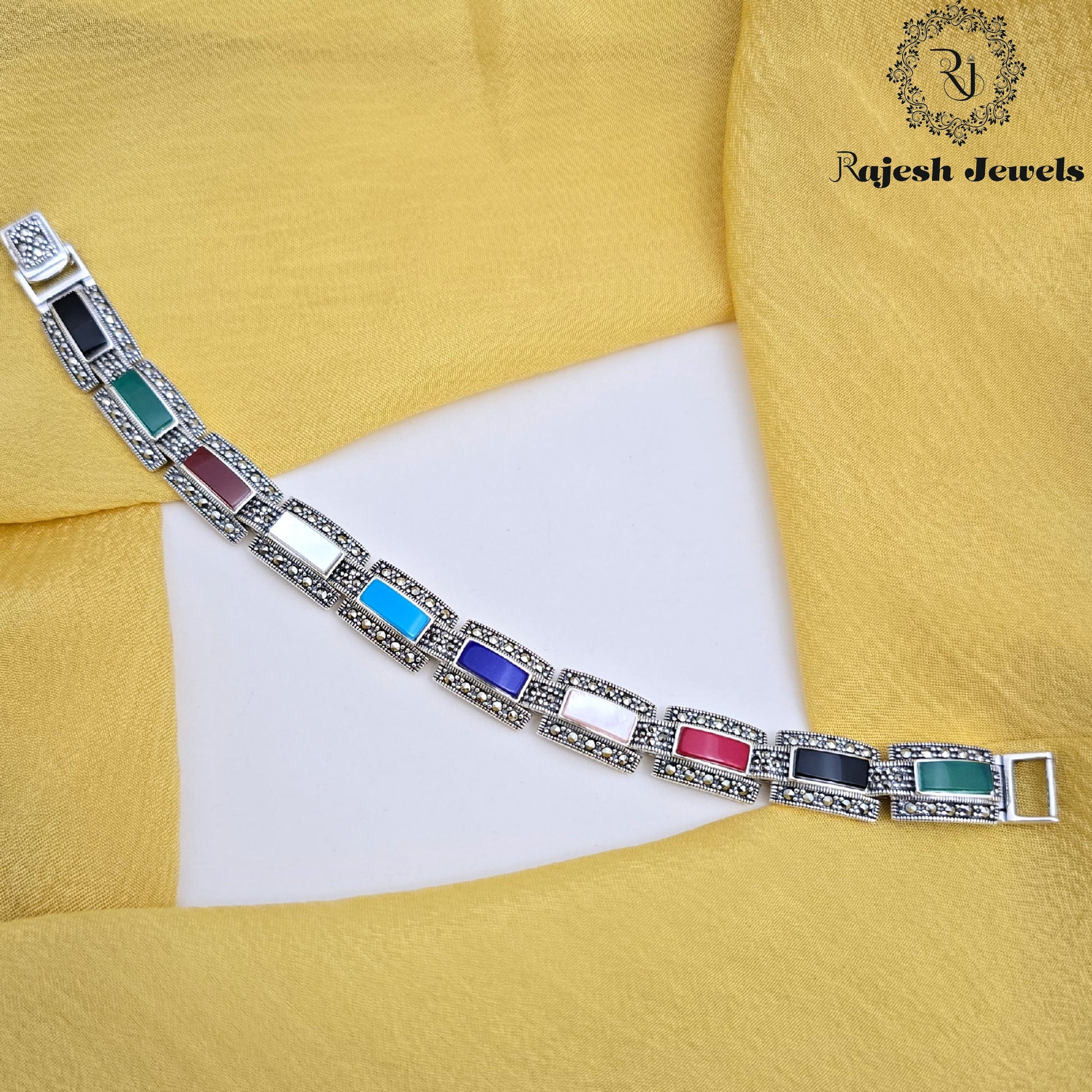 92.5 Pure Sterling Silver Marcasite Bracelet Studded With Semi Precious Stones