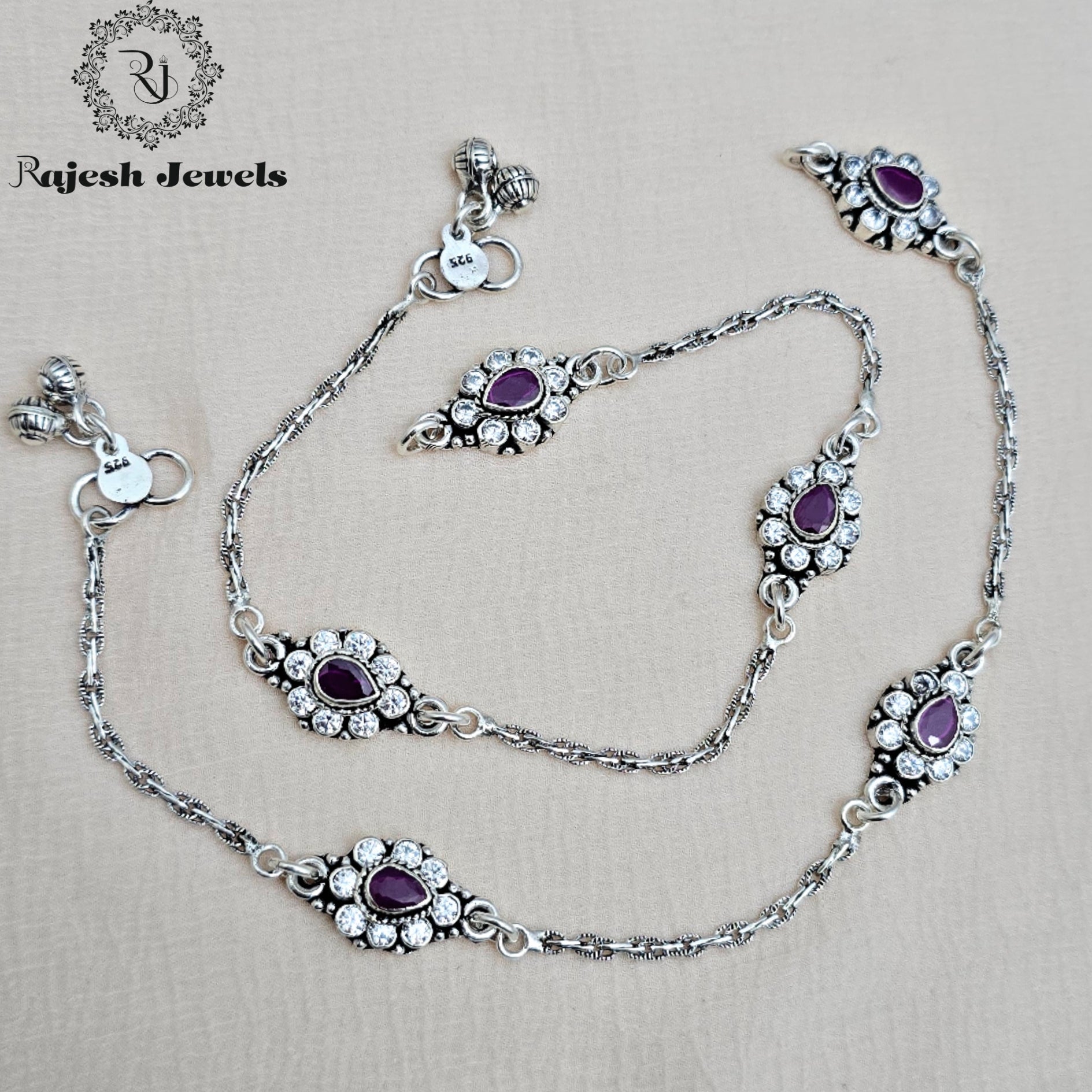 92.5 Pure Silver Oxidised Antique Finish Handmade Anklets Studded With Semi Precious Stones