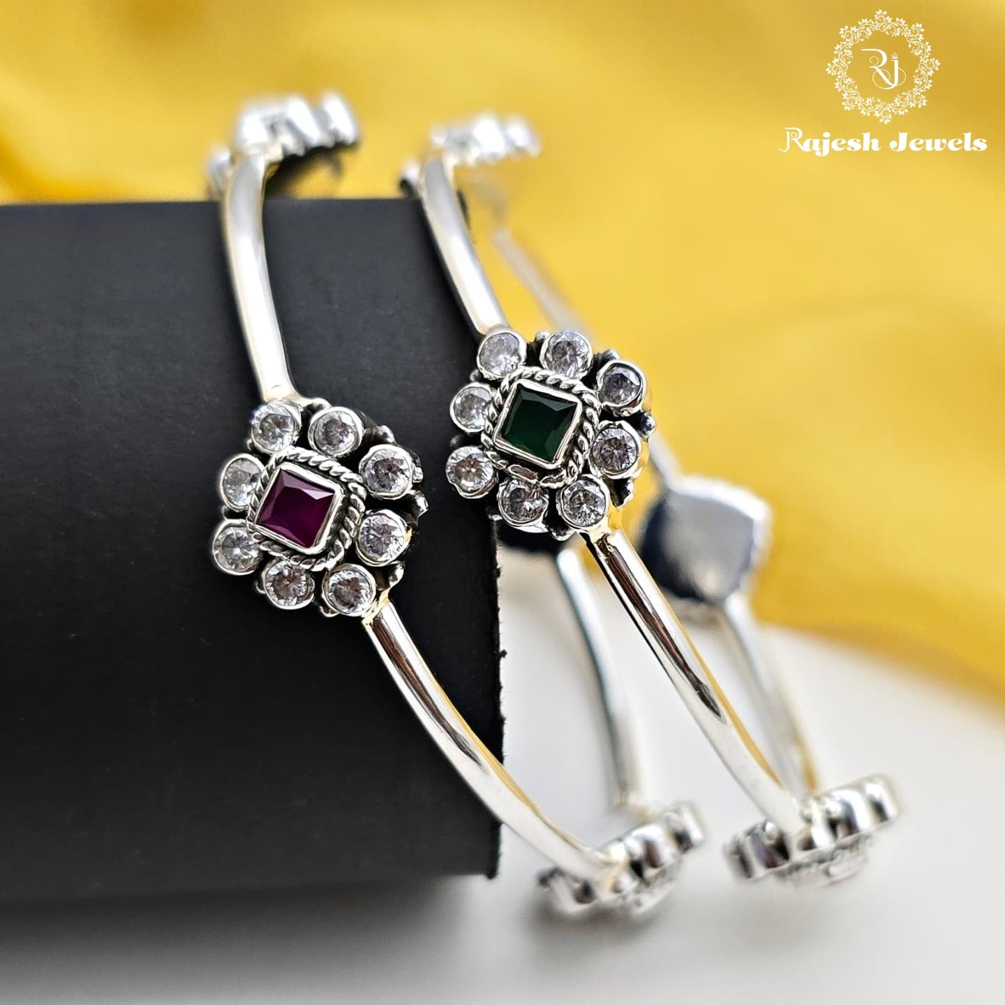 92.5 Pure Silver Oxidised Antique Finish Handmade Bangles Studded With Semi Precious Stones