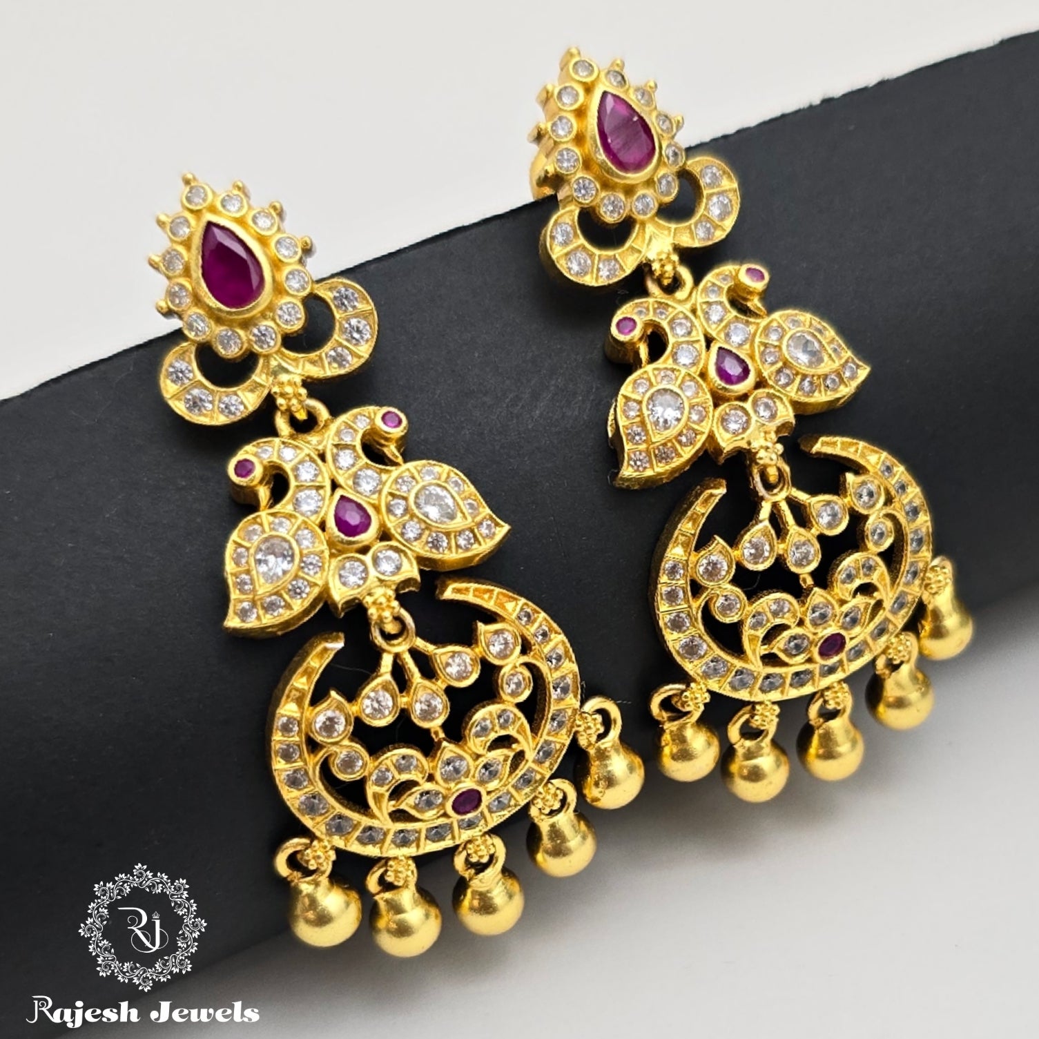 92.5 Pure Silver Gold Plated Chandbali Earrings Studded With Semi Precious Stones