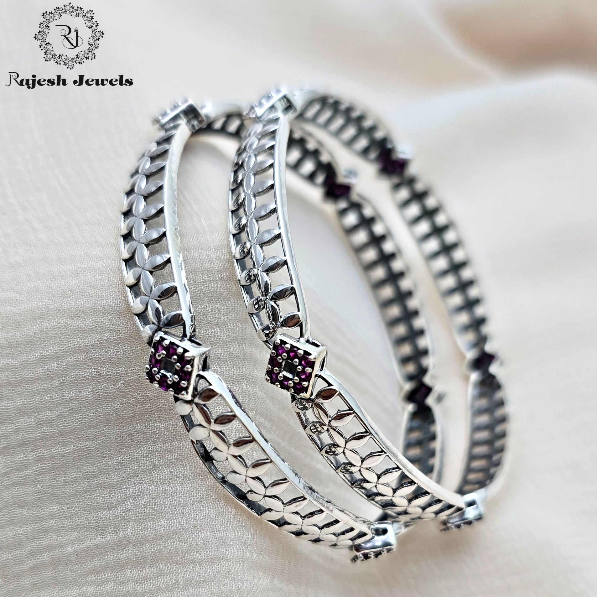 92.5 Pure Silver Oxidised Antique Finish Handmade Filigree Worked Bangles Studded With Semi Precious Stones
