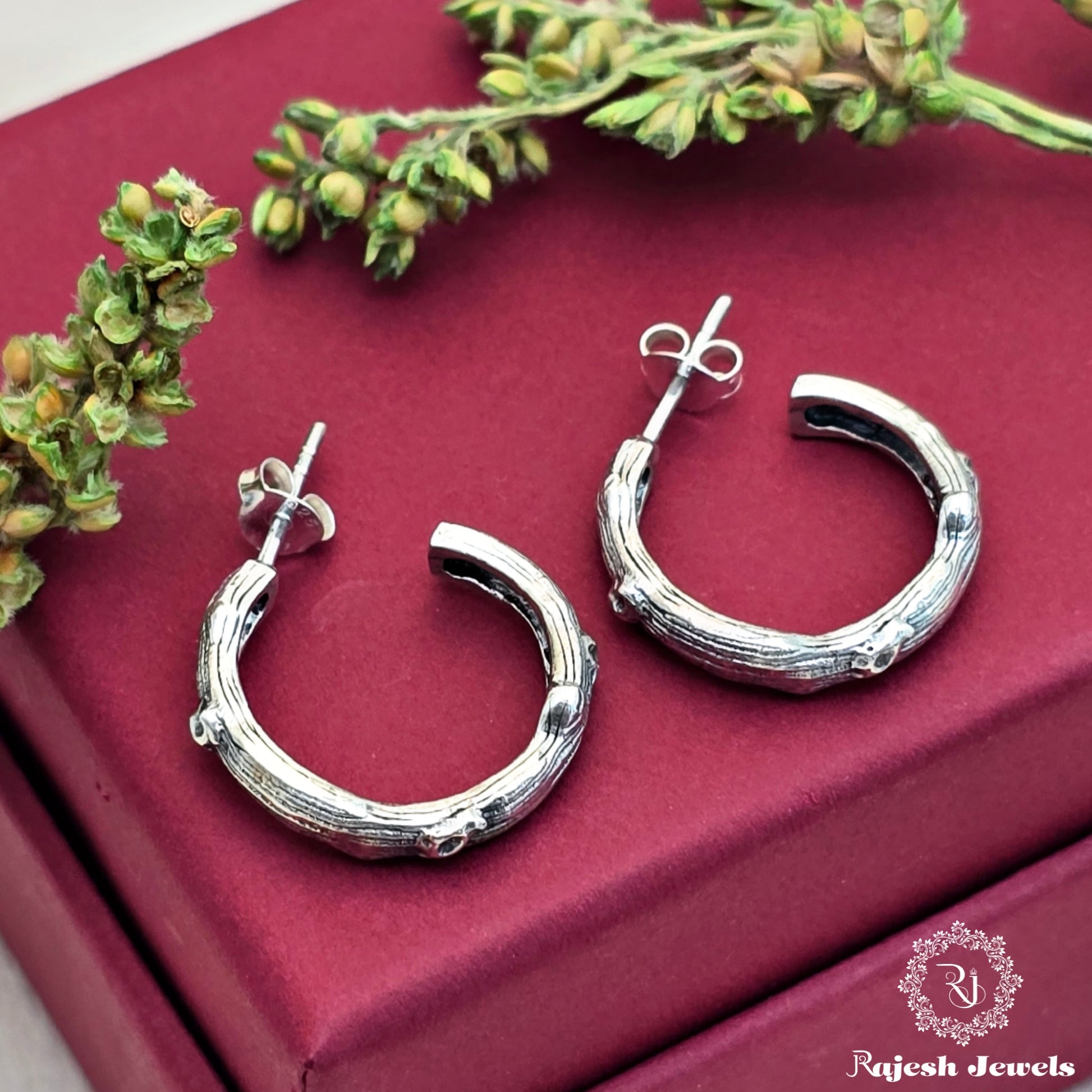 92.5 Pure Oxidised Antique Finish Bali Earrings Studded With Semi Precious Stone