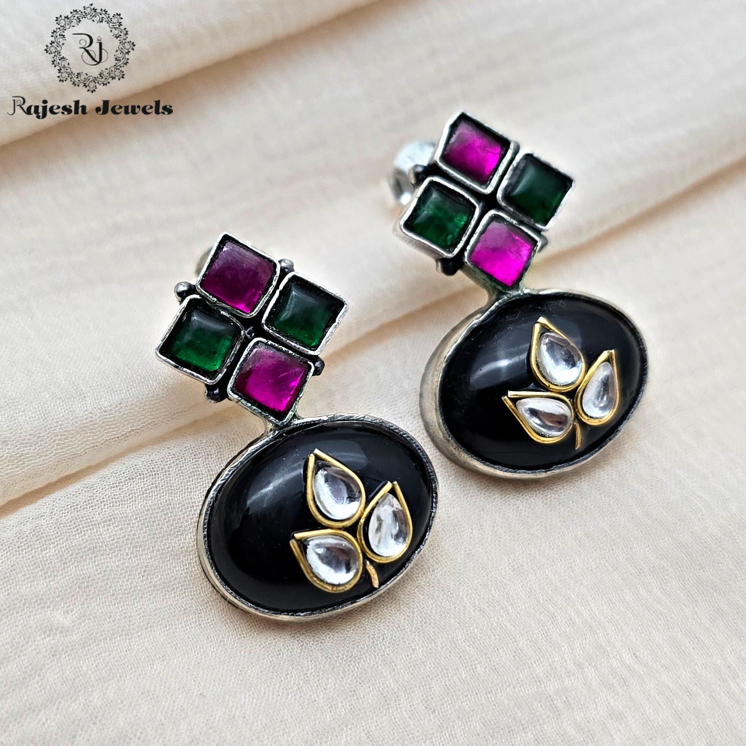 92.5 Pure Silver Oxidised Antique Finish Handmade Earrings Studded With Semi Precious Stones