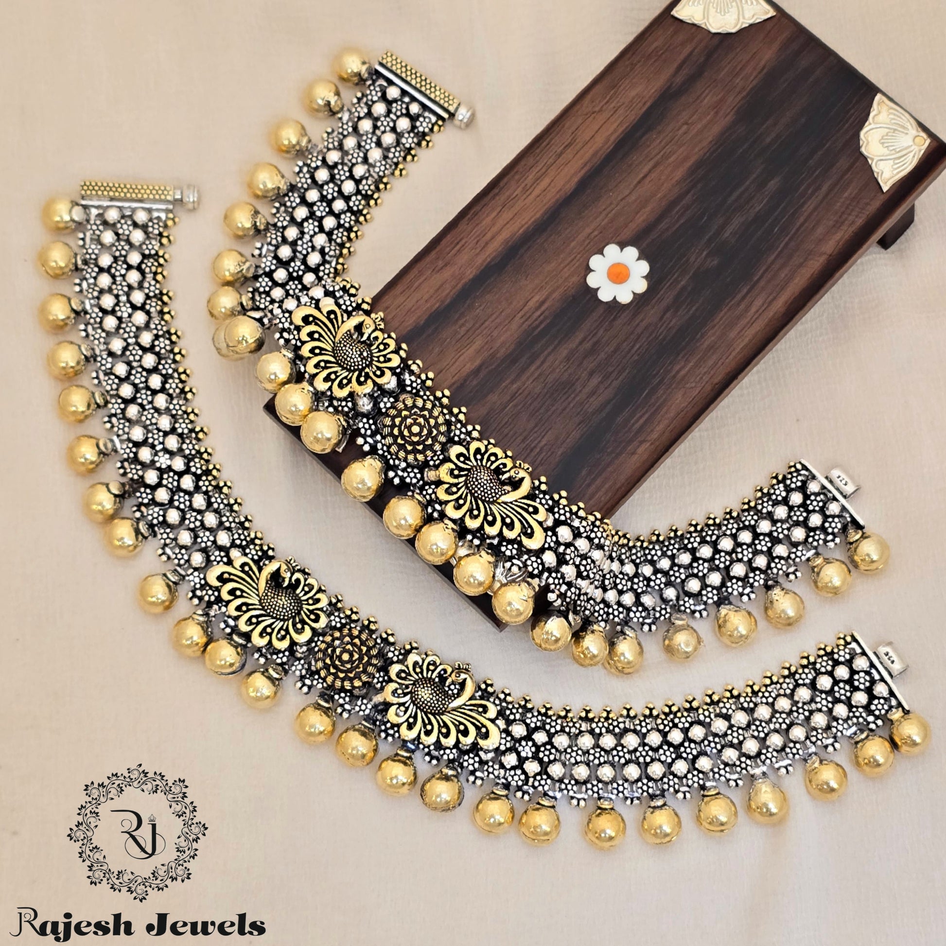 92.5 Pure Silver Oxidised Antique Finish Handmade Anklet.
