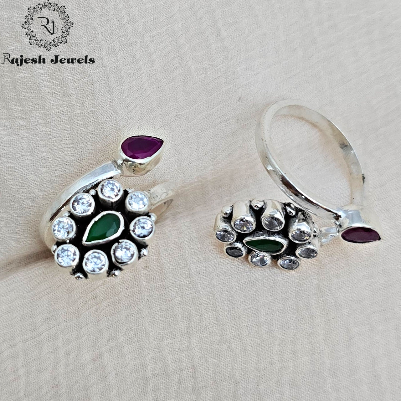 92.5 Pure Silver Oxidised Antique Finish Handmade Cutstone Toerings Studded With Semi Precious Stones
