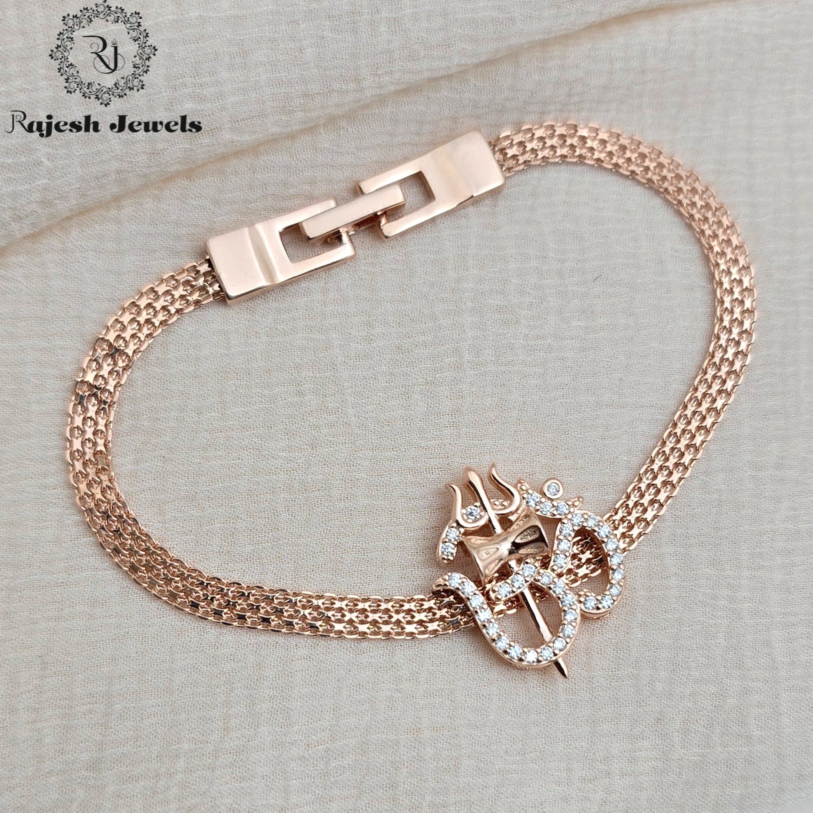 92.5 Pure Sterling Silver Cz Rosegold Bracelet Studded With Semi Precious Stones
