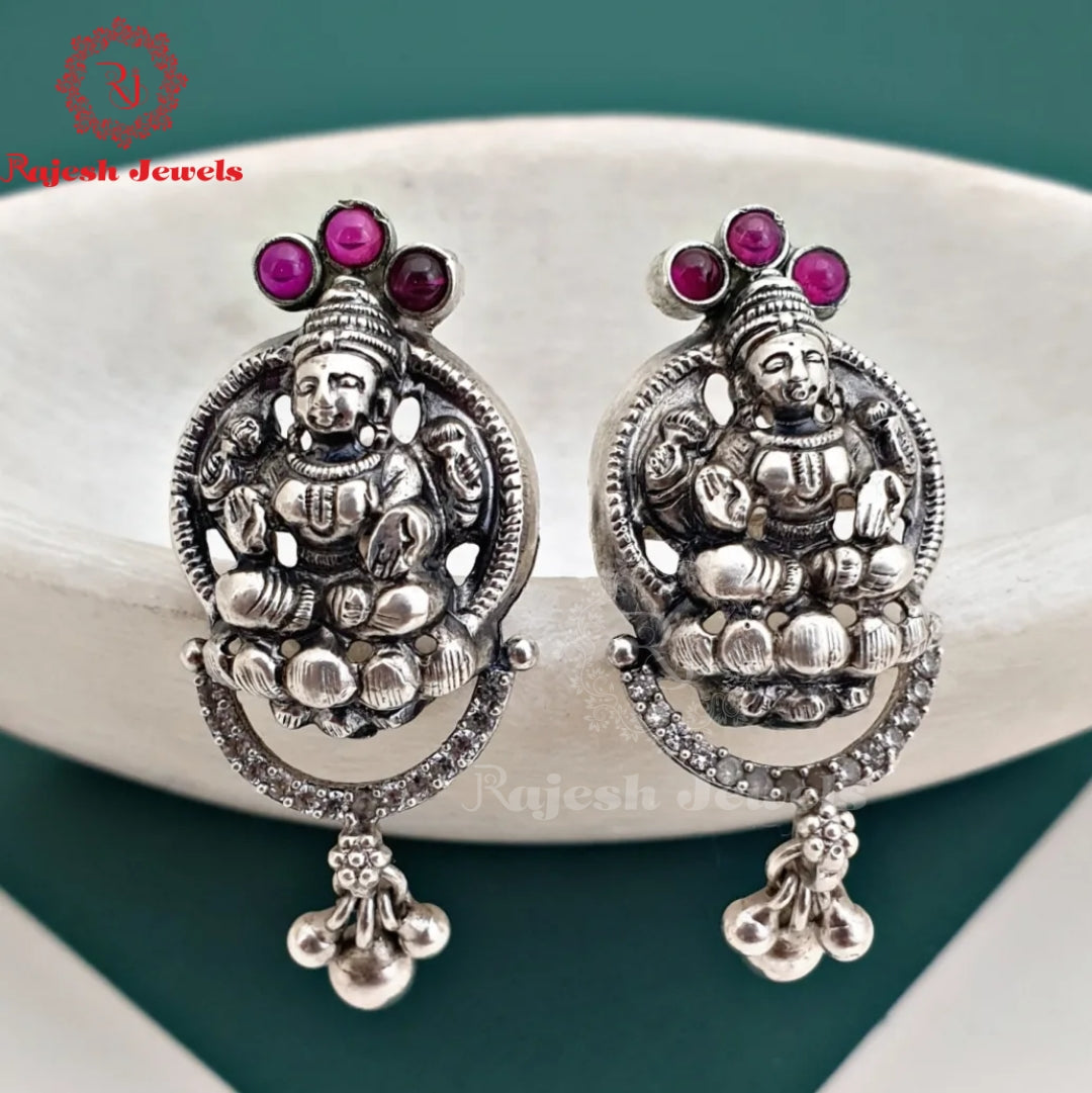92.5 Pure Silver Oxidised Antique Finish Handmade Earrings Studded With Semi Precious Stones