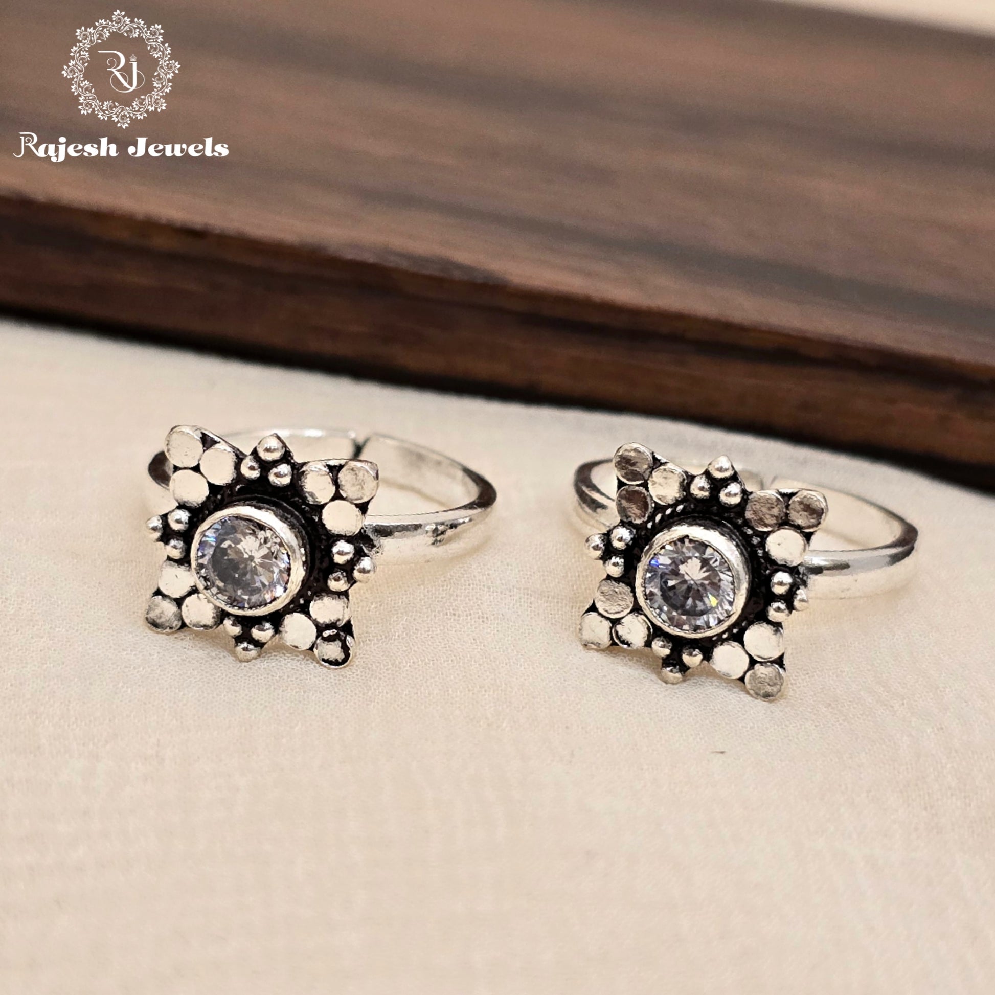 92.5 Pure Silver Plain White Finish Handmade Toerings Studded With Semi Precious Stones