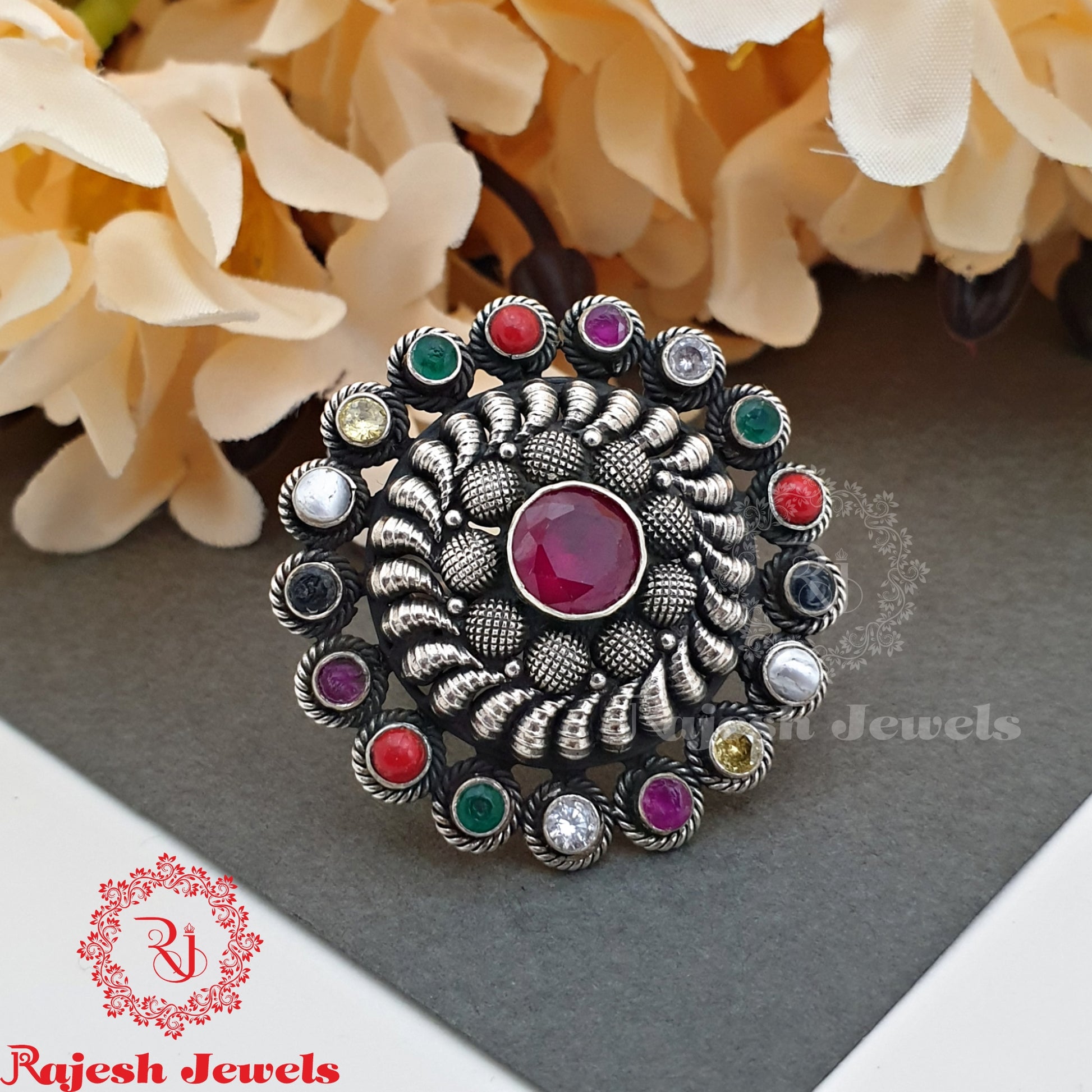 Navrathan Silver Finger Ring